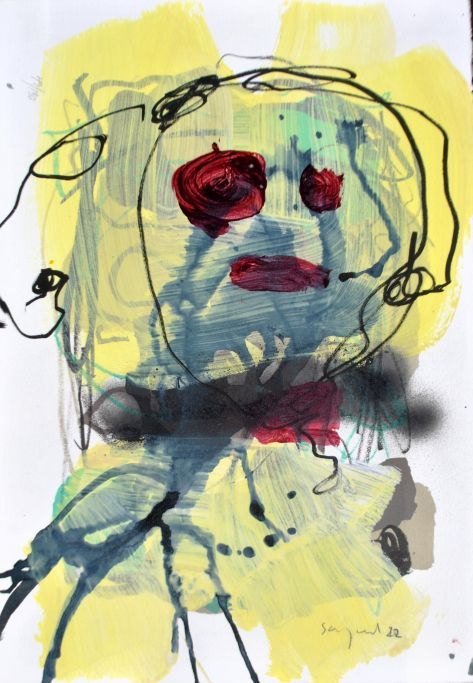 Skovgaard, Peter (1960 -) Danmark: Komposition. Blandform på farvelitografi. Signeret 2022. 40 x 28 cm.