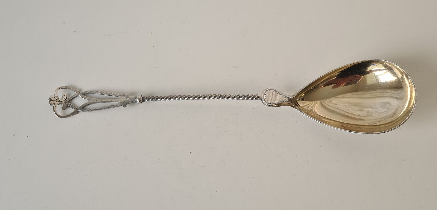 Stor serveringsske i sølv udført i Ny Gotisk stil fra 1883 af J.Grønlund