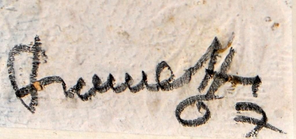 Italiensk kunstner (20. årh.): Studio per Utrillo. Signeret Fr...... 1967. Akvarel/tusch på tapet. 38 x 30,5 cm.