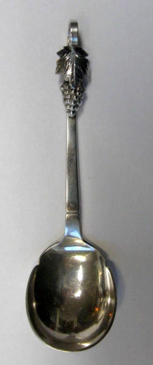 Sølvske, håndarbejde, med drueklase, 1950, Danmark.