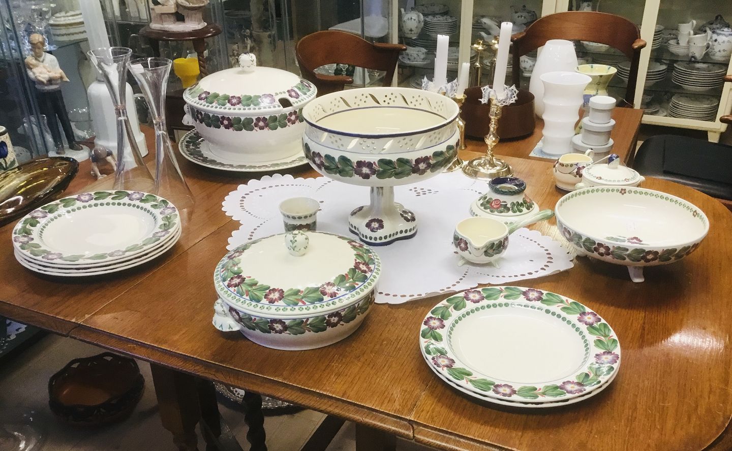 Aluminia stel A med dekoration Aurikkel af H. Slott-Møller i 1903, delene er i meget fin stand, uden skår og krakeleringer står som nyt.
