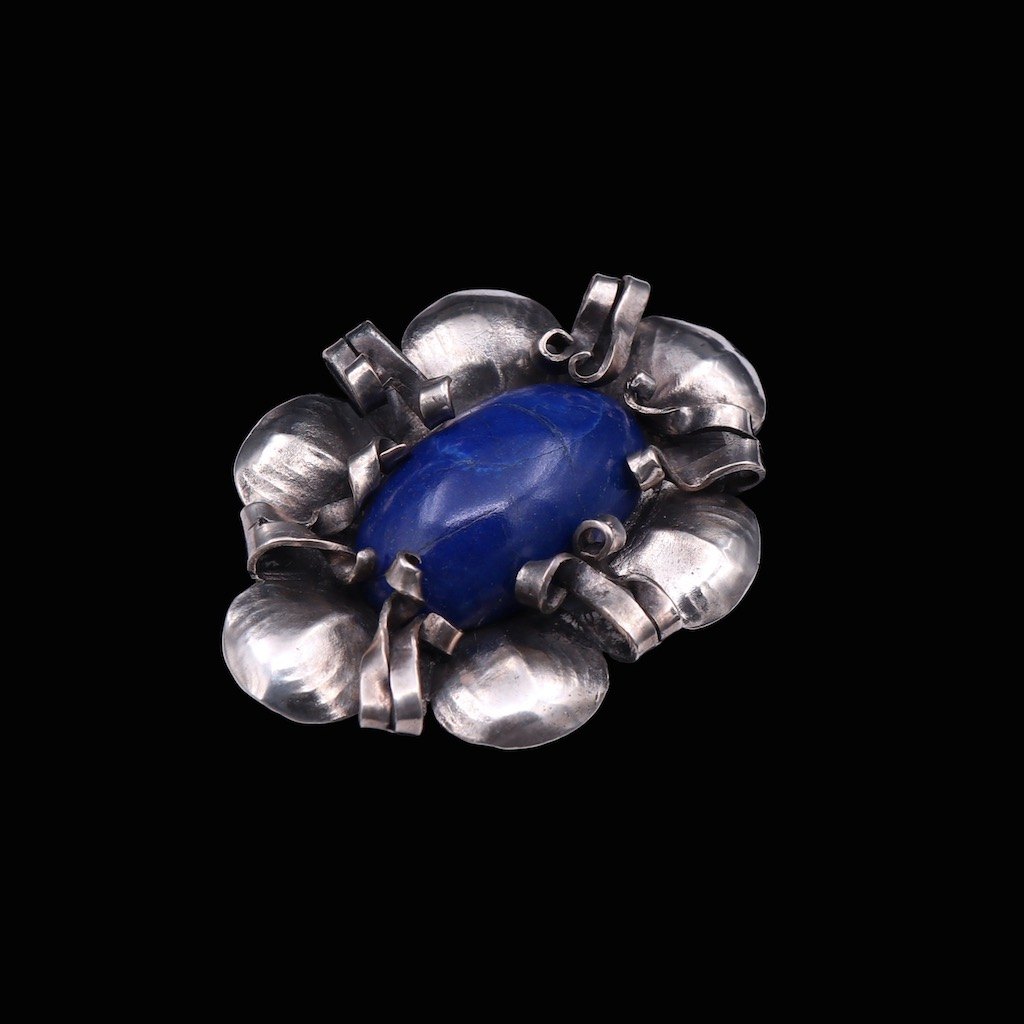 Mogens Ballin 1871-1914. Skønvirke Broche i sølv med lapis lazuli.