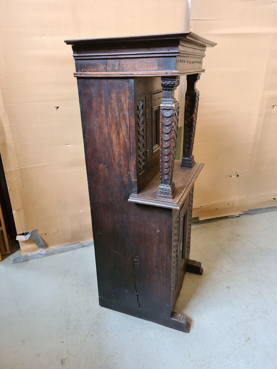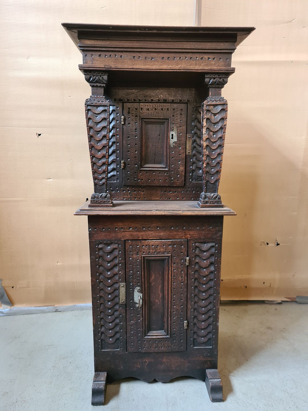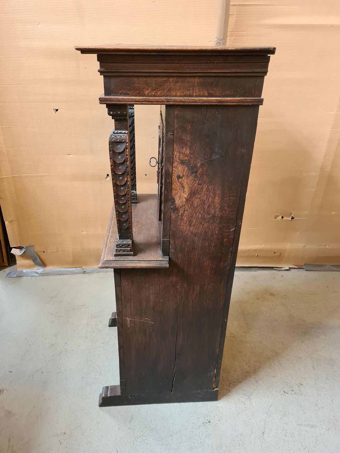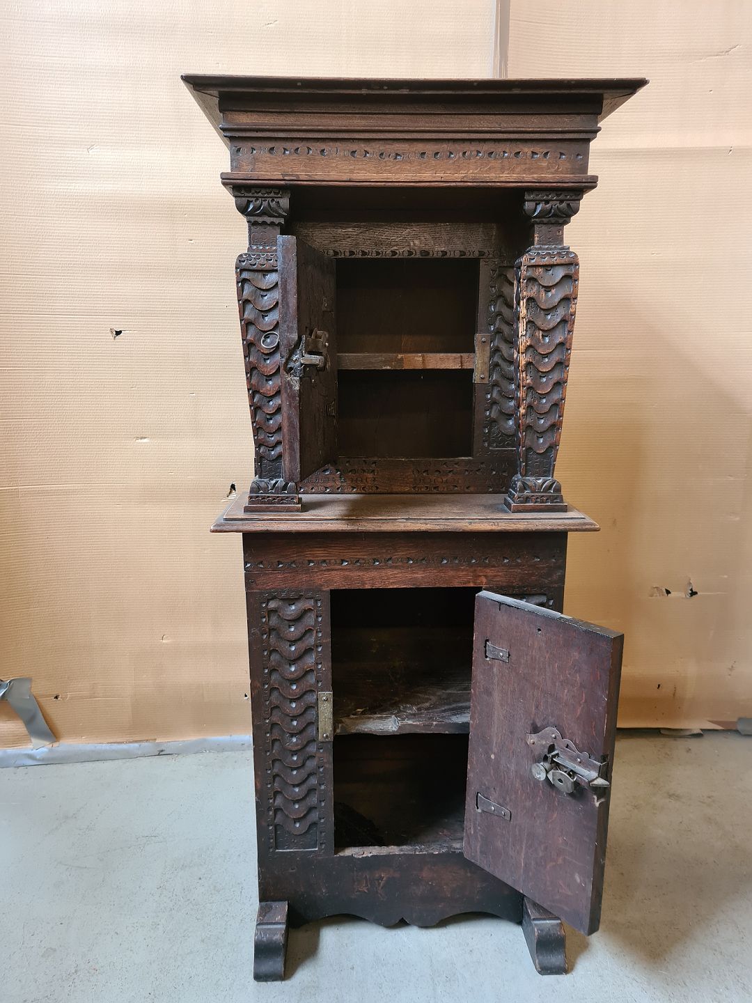 Skab i massivt egetræ, fra 1850erne.