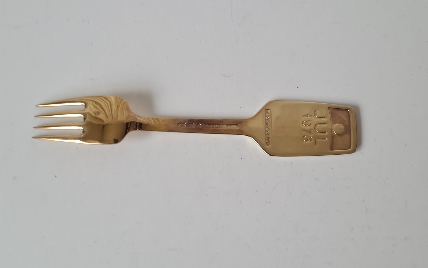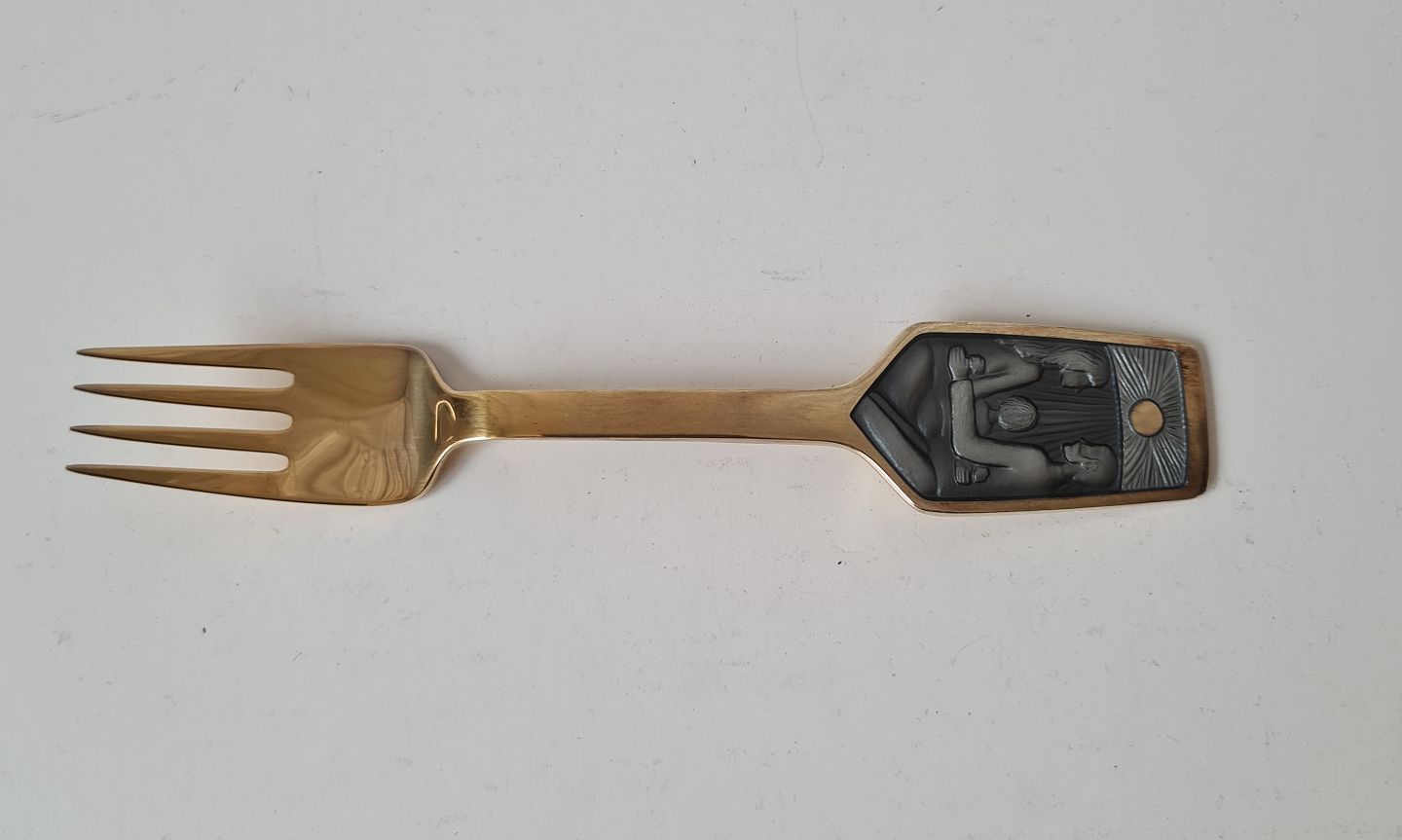 A.Michelsen julegaffel i forgyldt sterlingsølv med emalje 1973