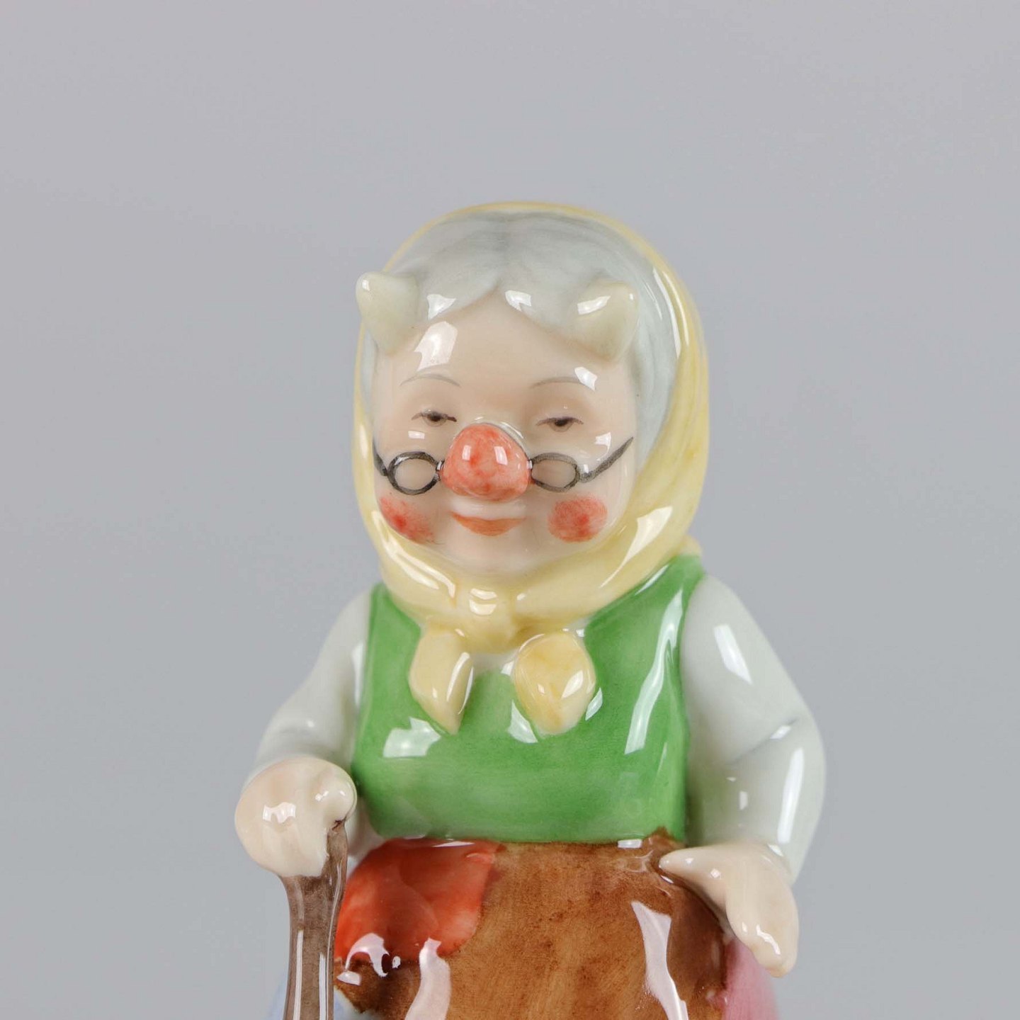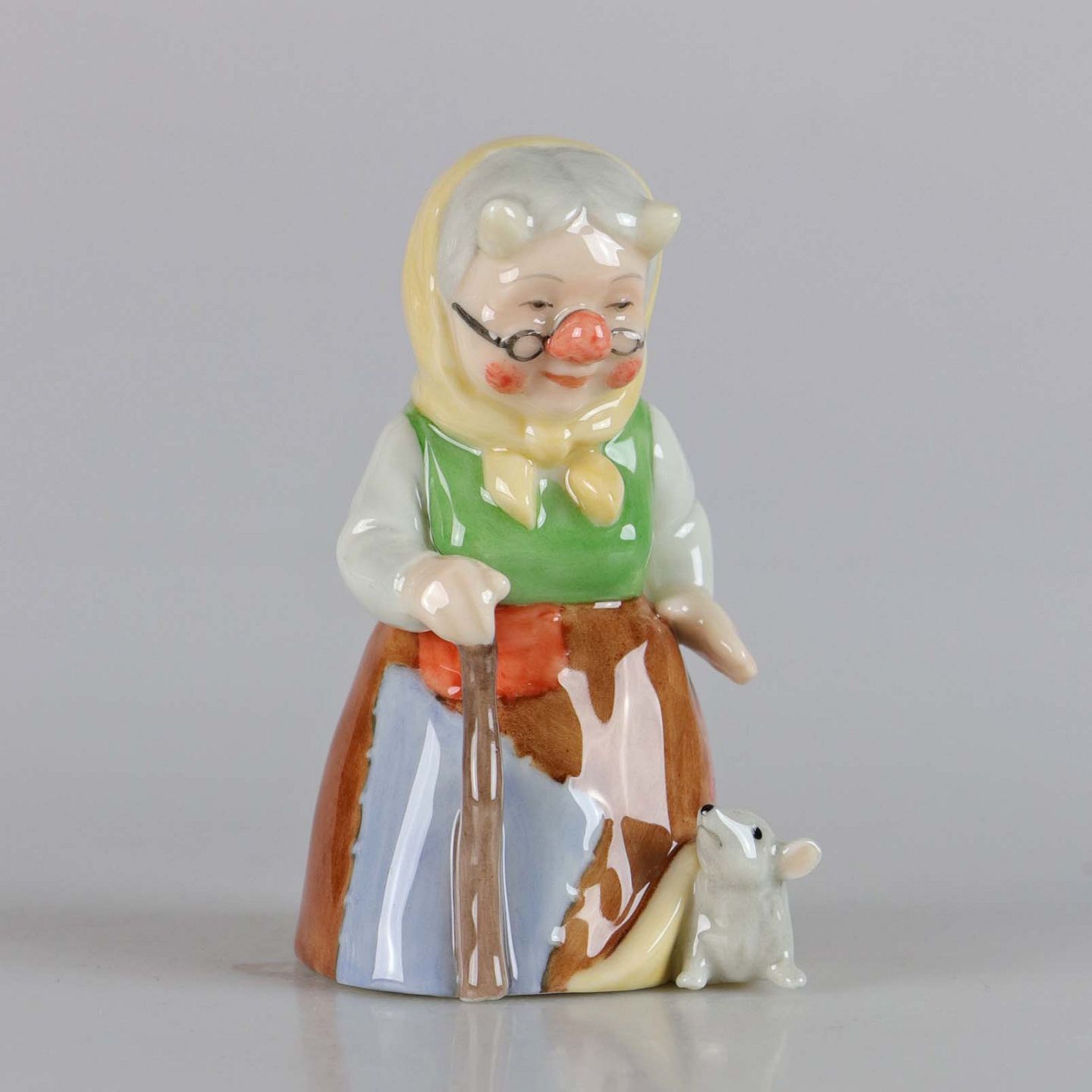 Porcelænsfigur fra Collections serien Troldefamilie. Troldebedstemor med stok og mus