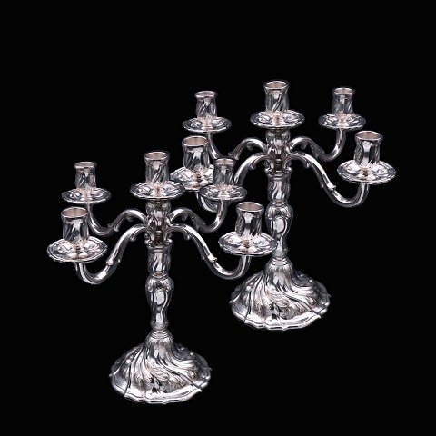 Peter Hertz. Et par fem-armet kandelabra i sølv.