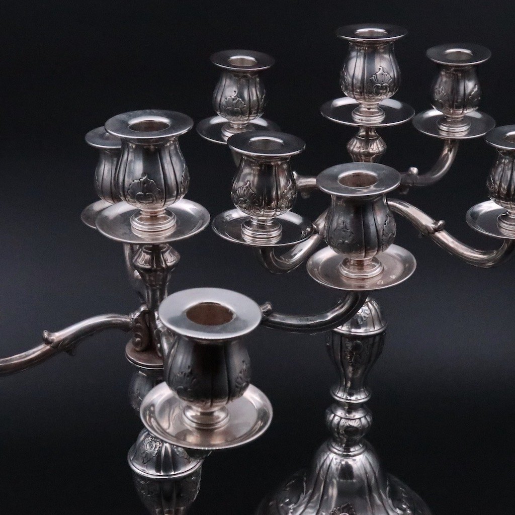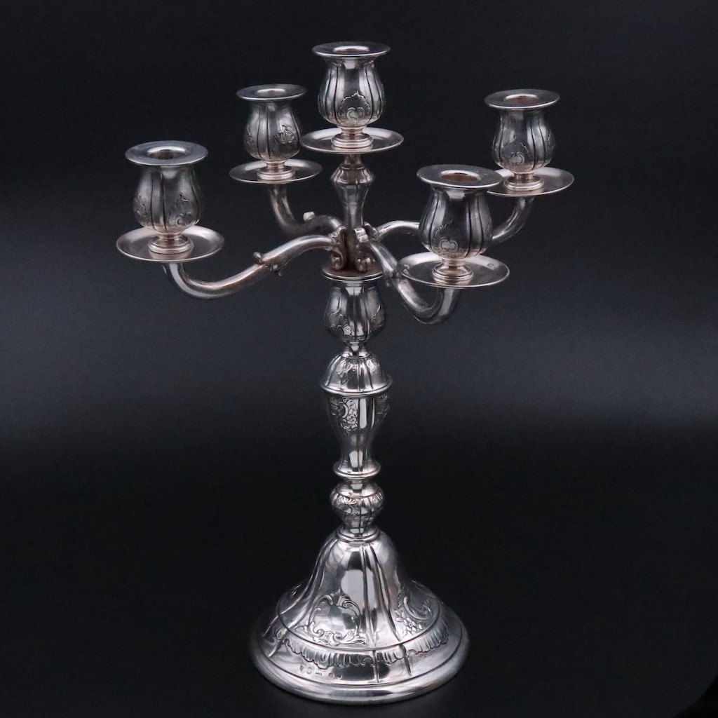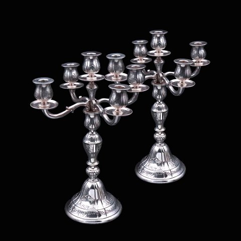 L W. Valentin. Et par fem-armet kandelabra i sølv.