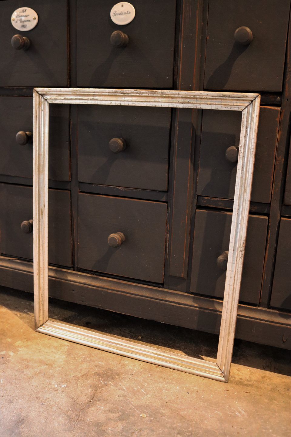 Antique 19th century wooden frame with original old silver coating and a very fine patina.