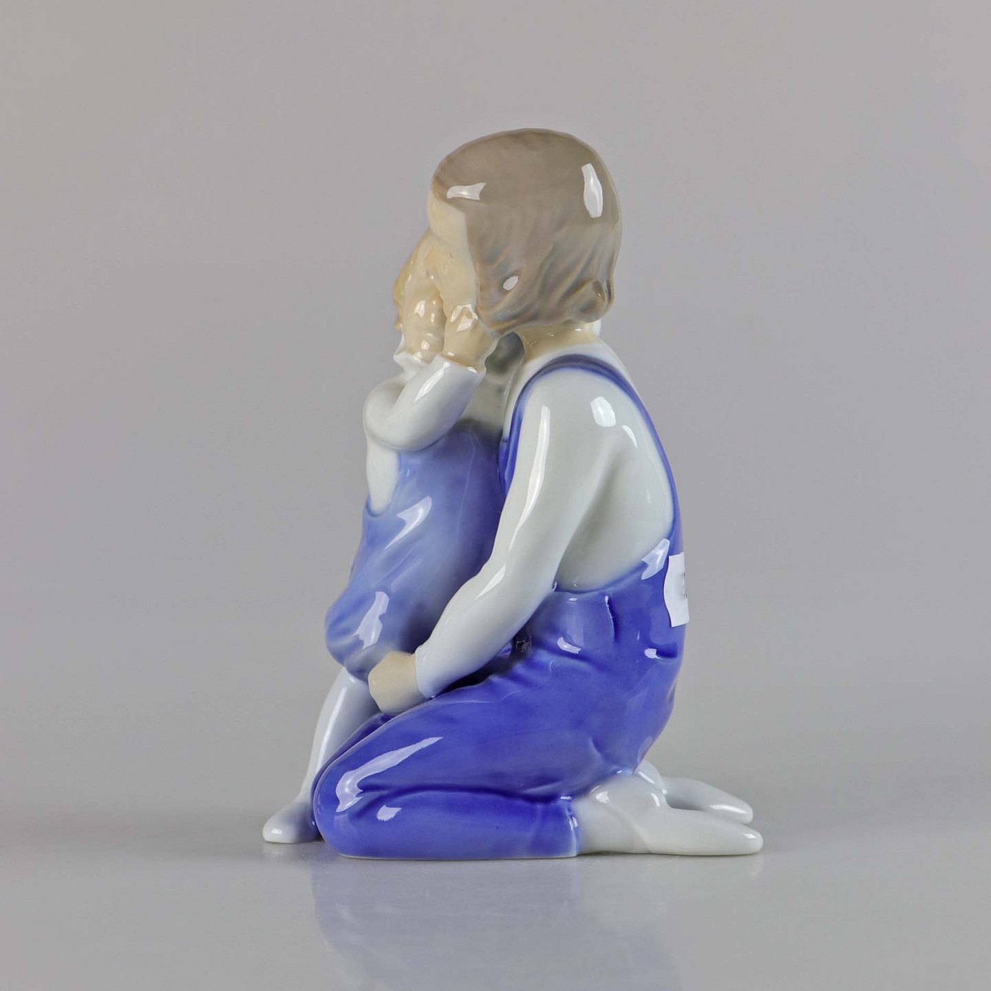 Figur i porcelæn af en ung pige og et barn som krammer. No 2250