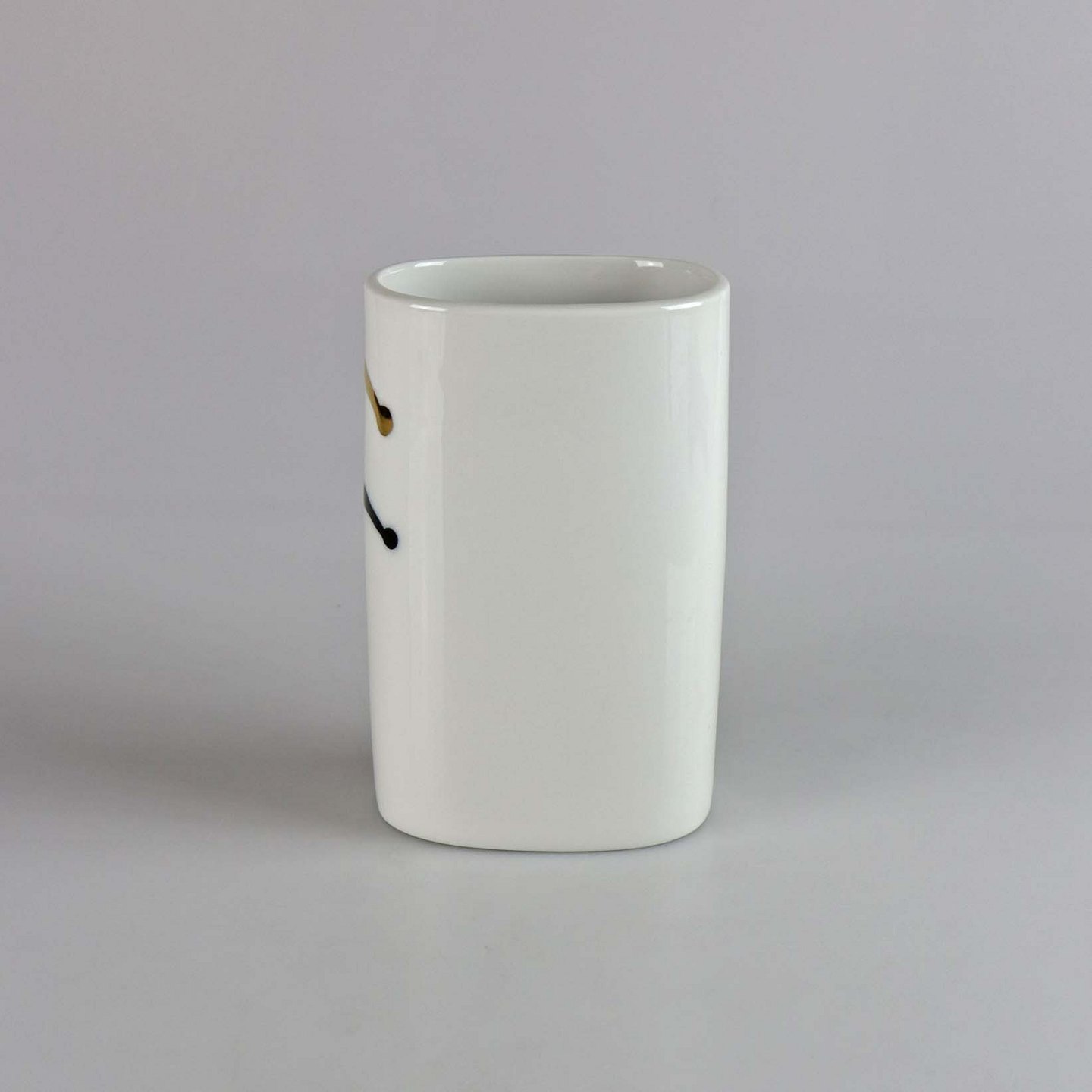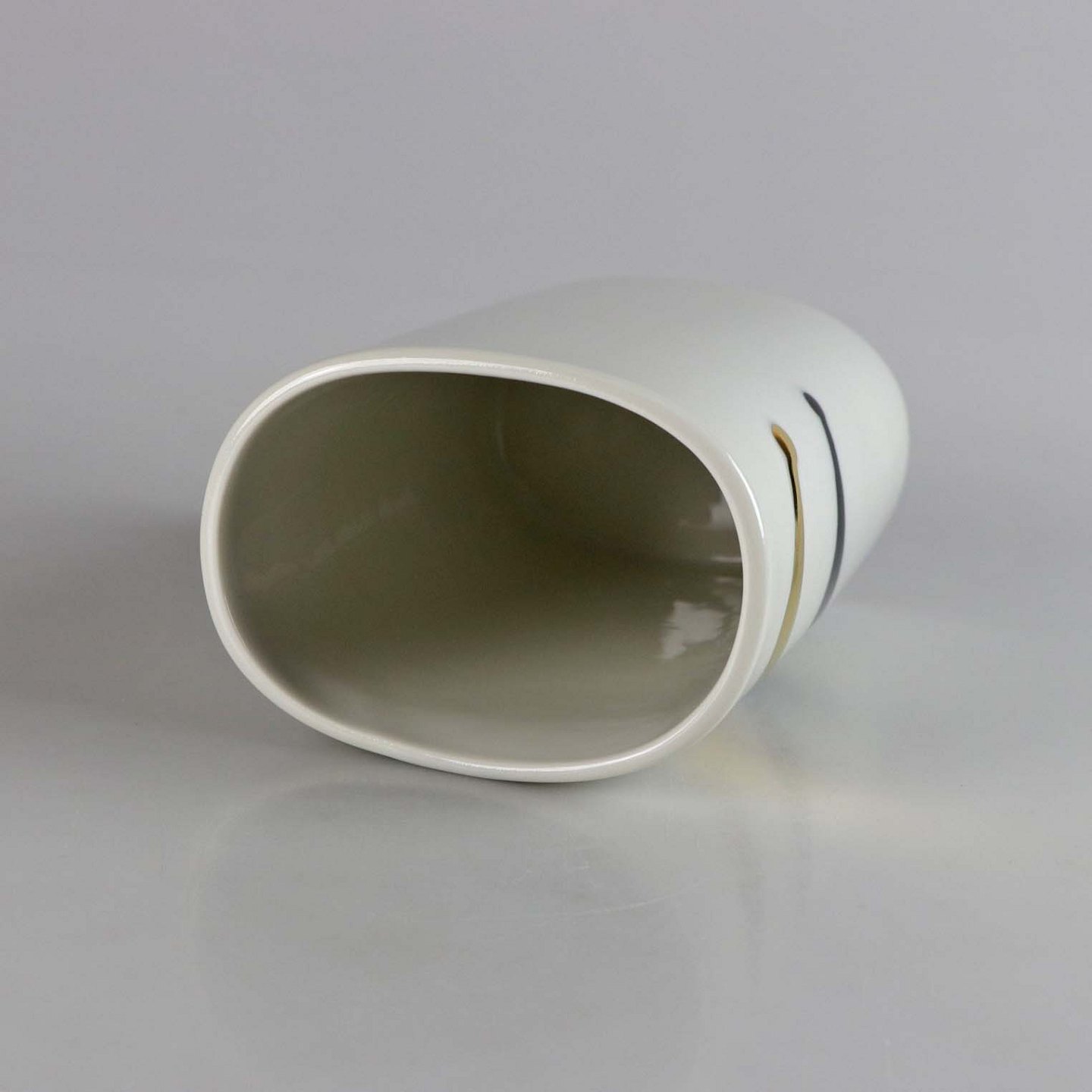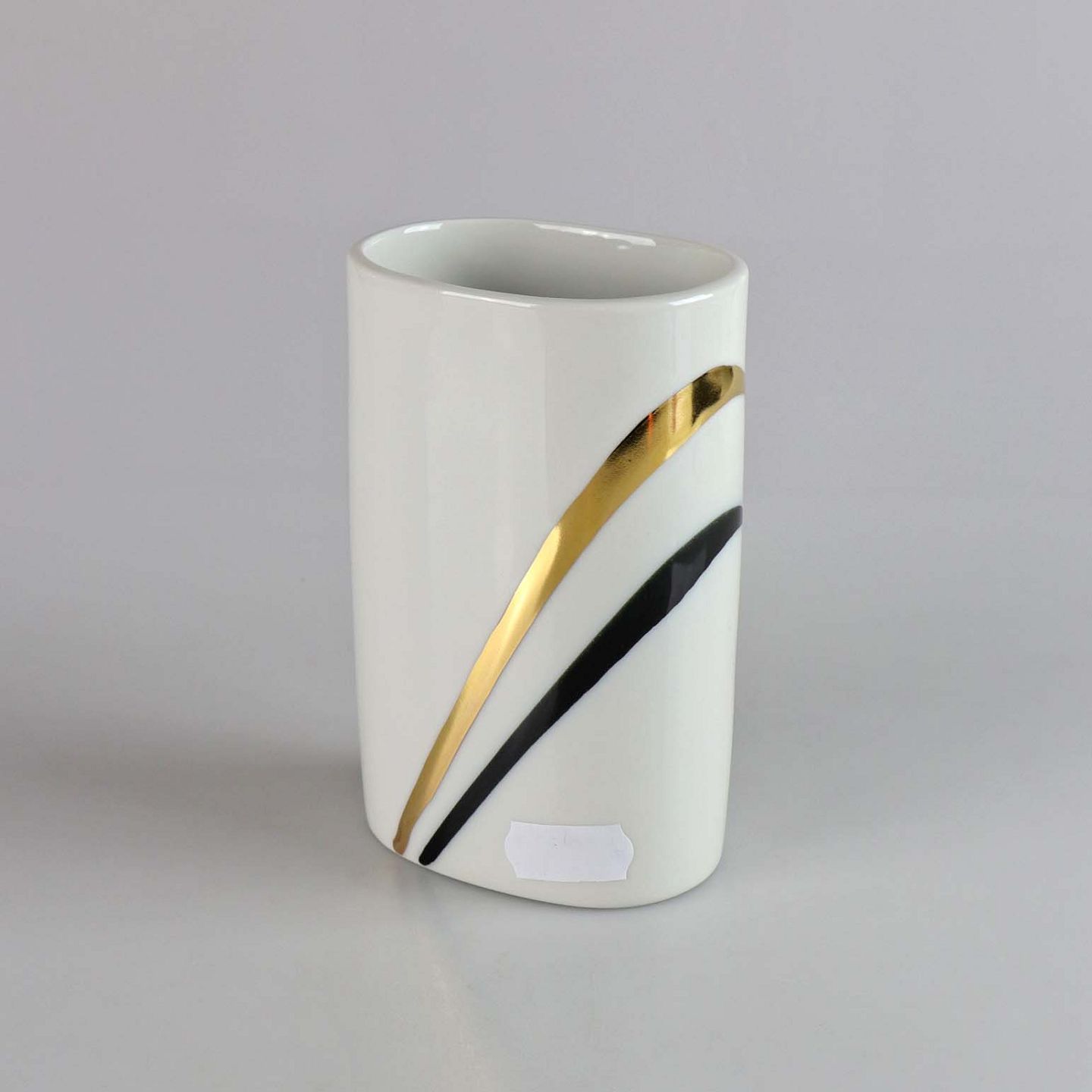 Blomstervase i hvidt porcelæn med sort og guldfarvet dekoration