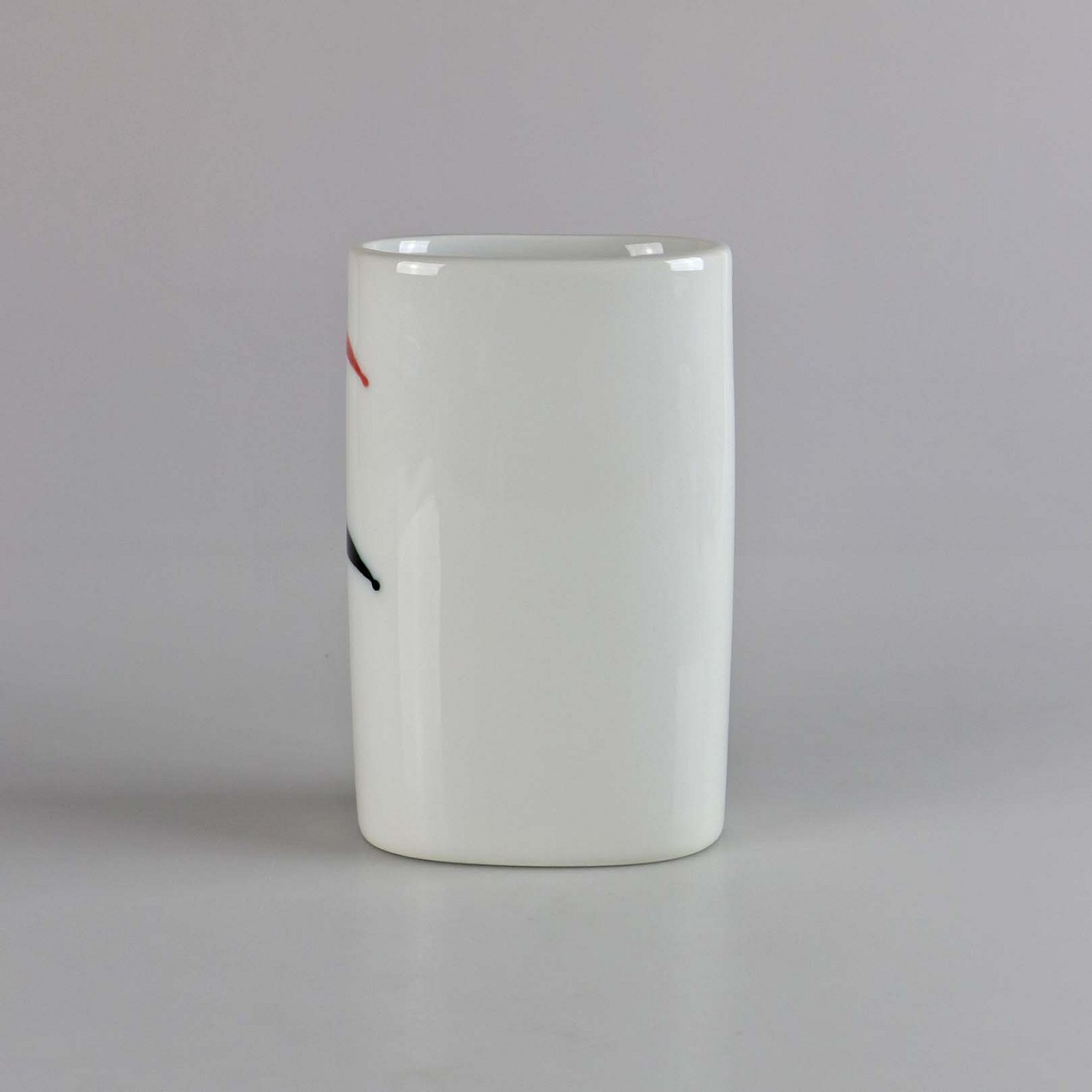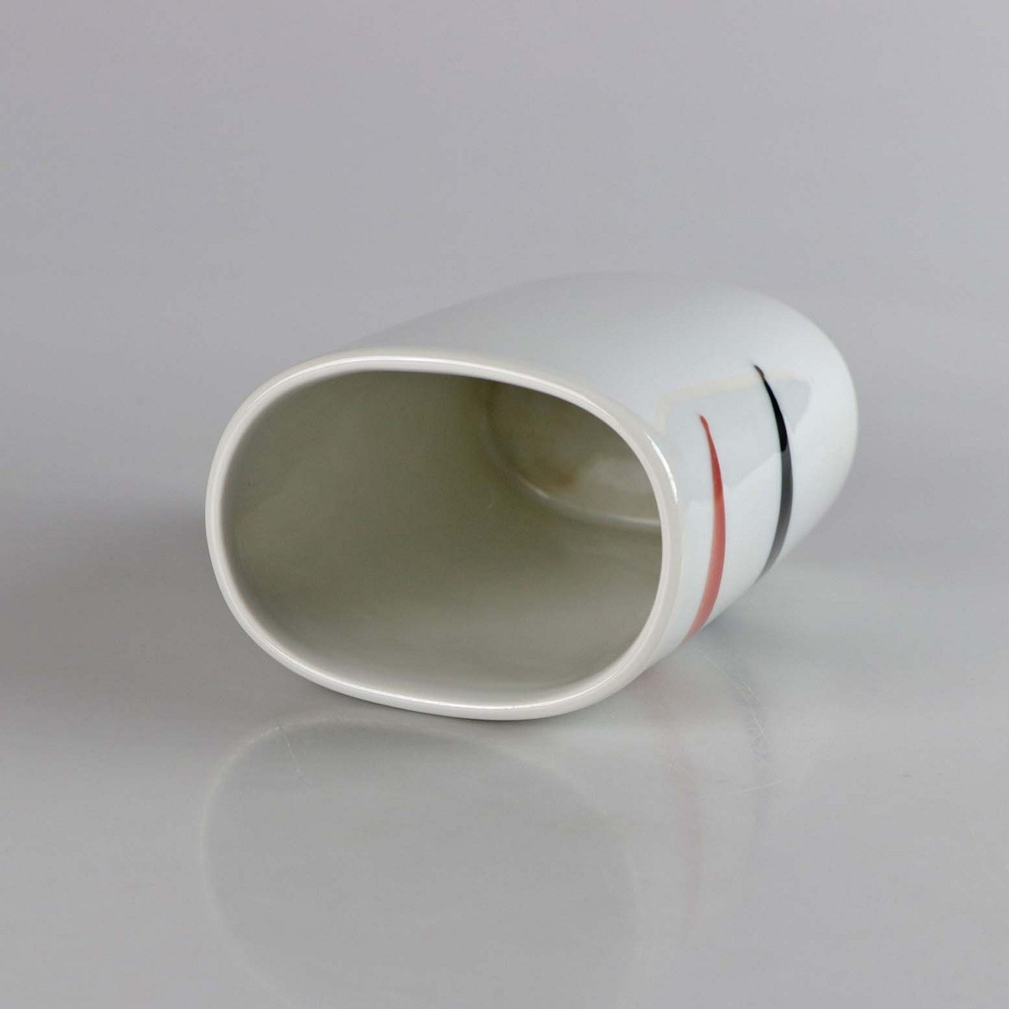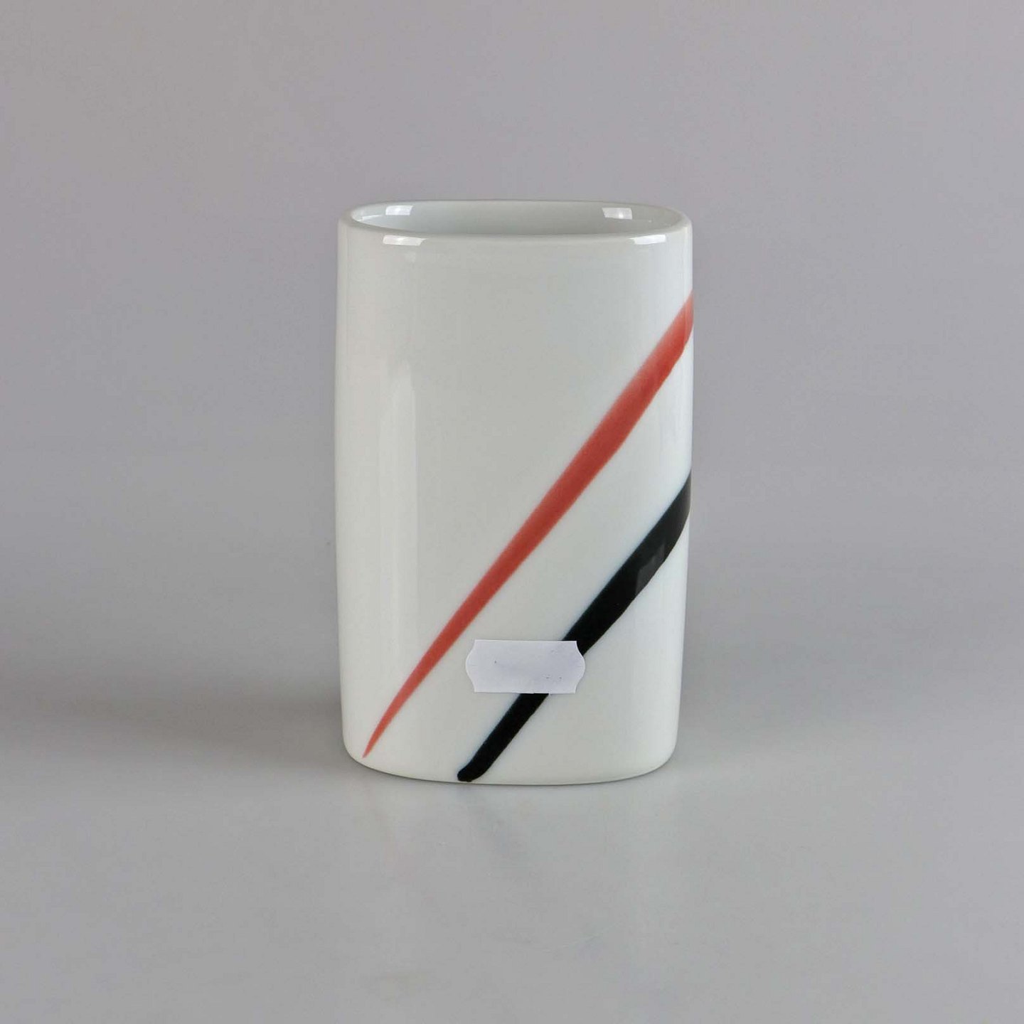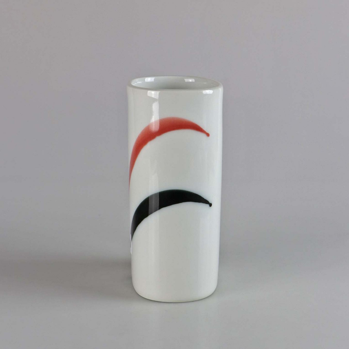 Blomstervase i hvidt porcelæn med sort og rød dekoration