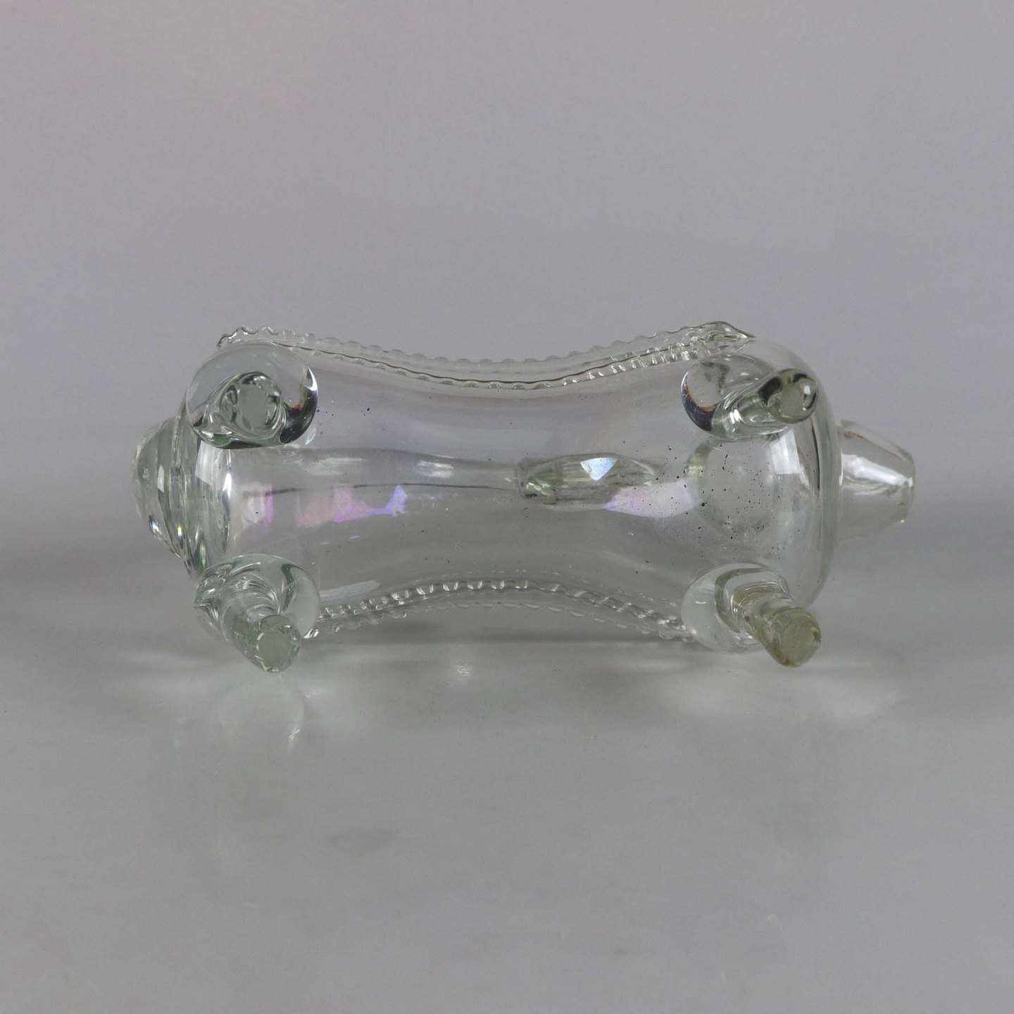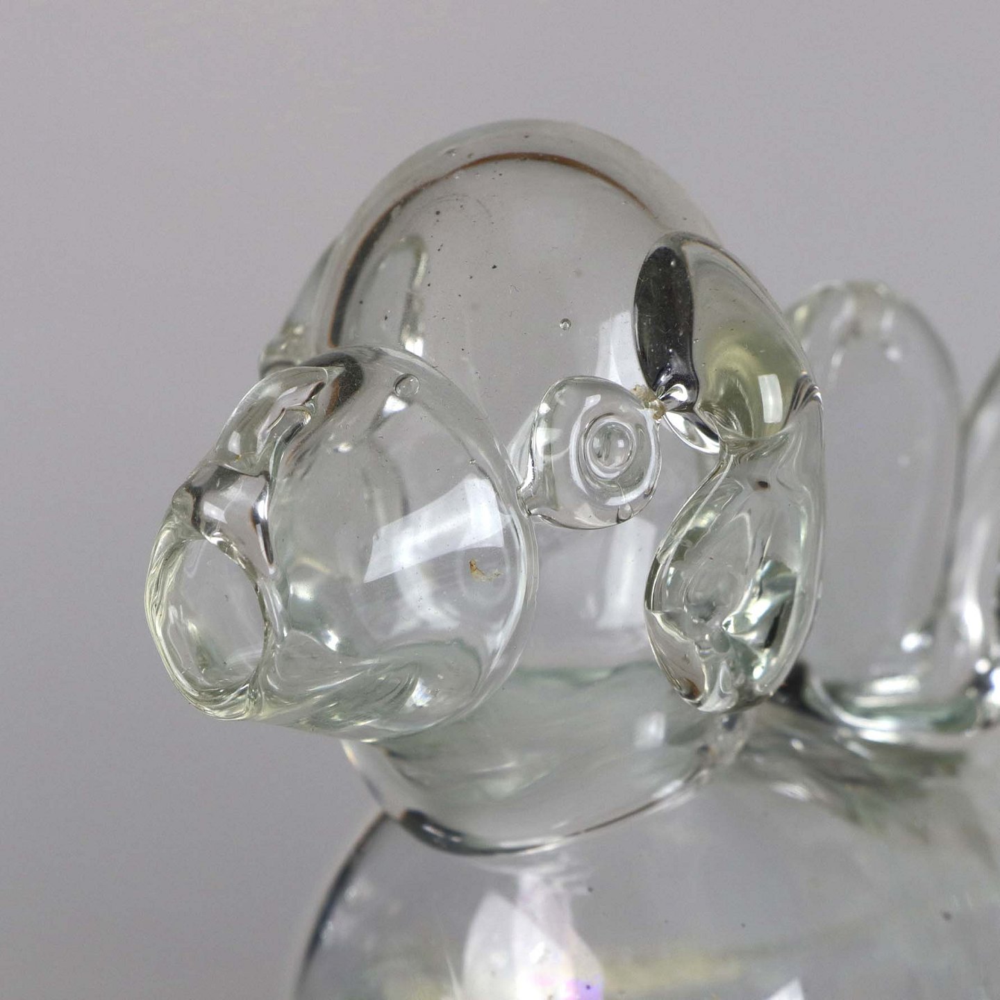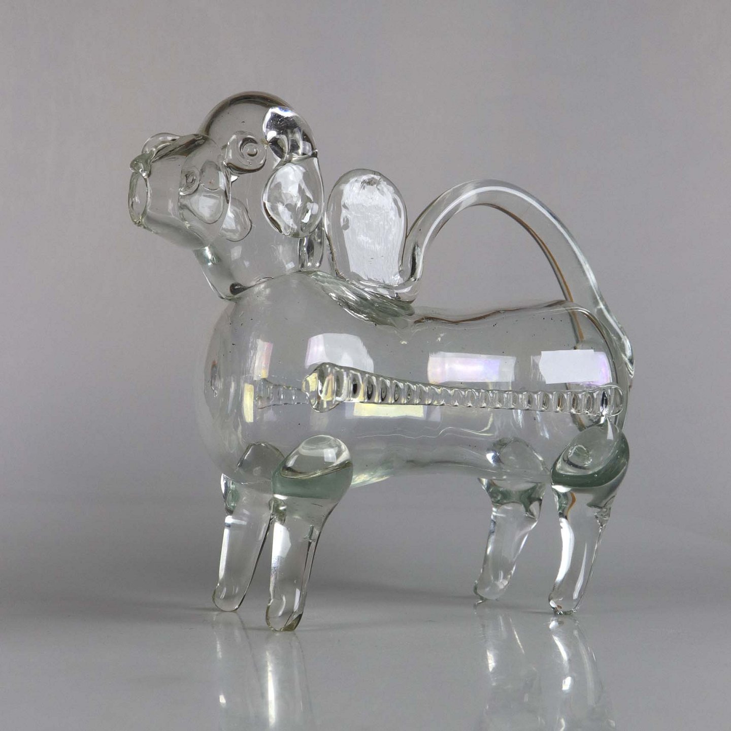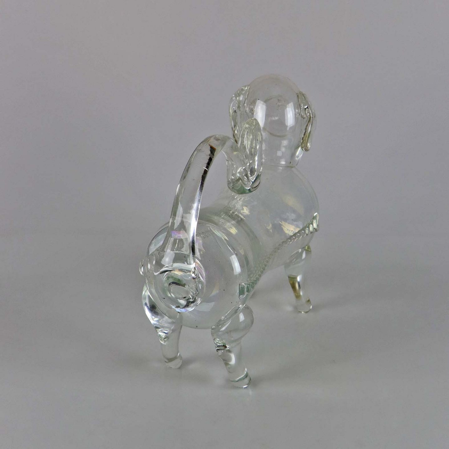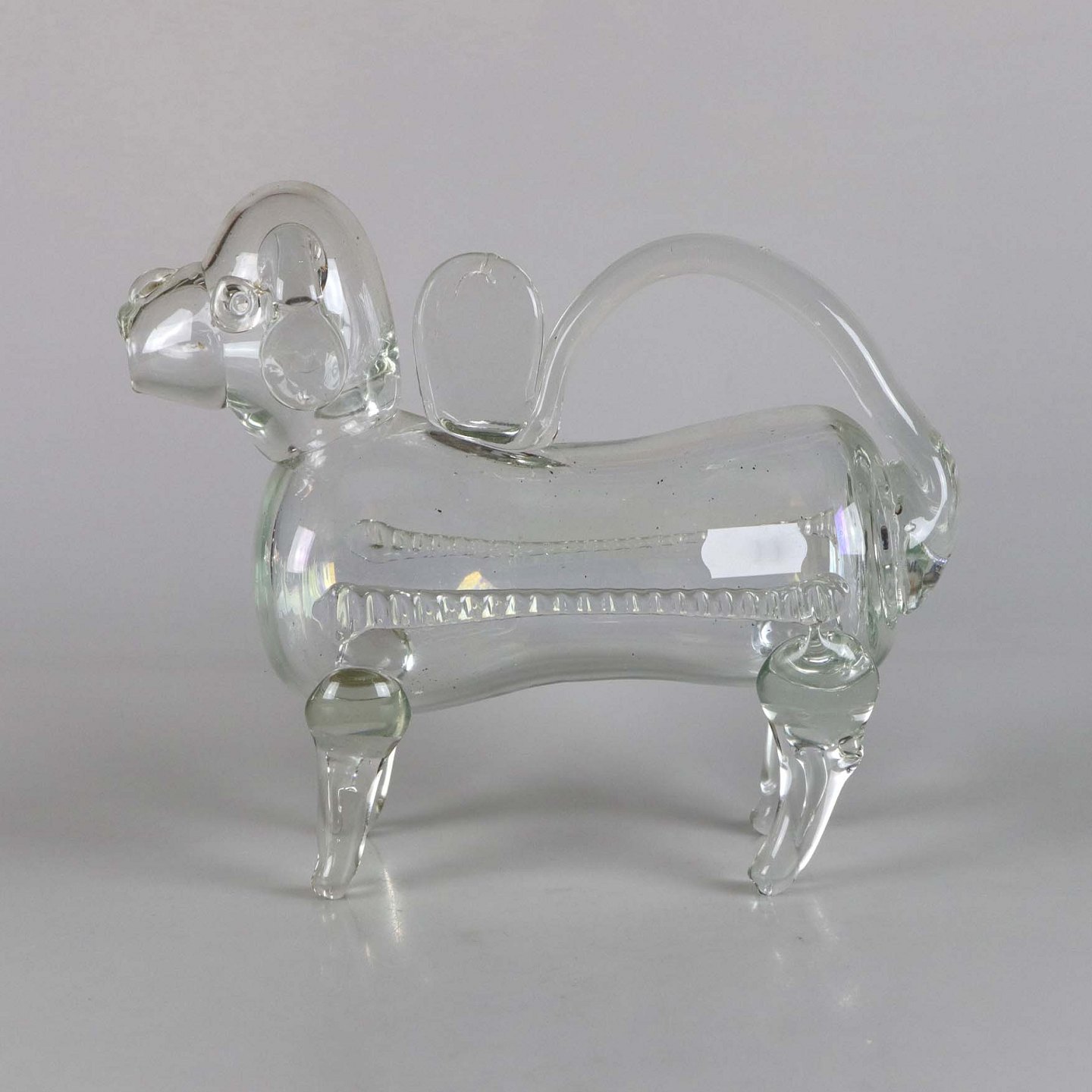 Flaske af glas formet som en hund.