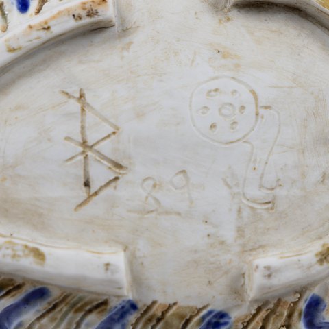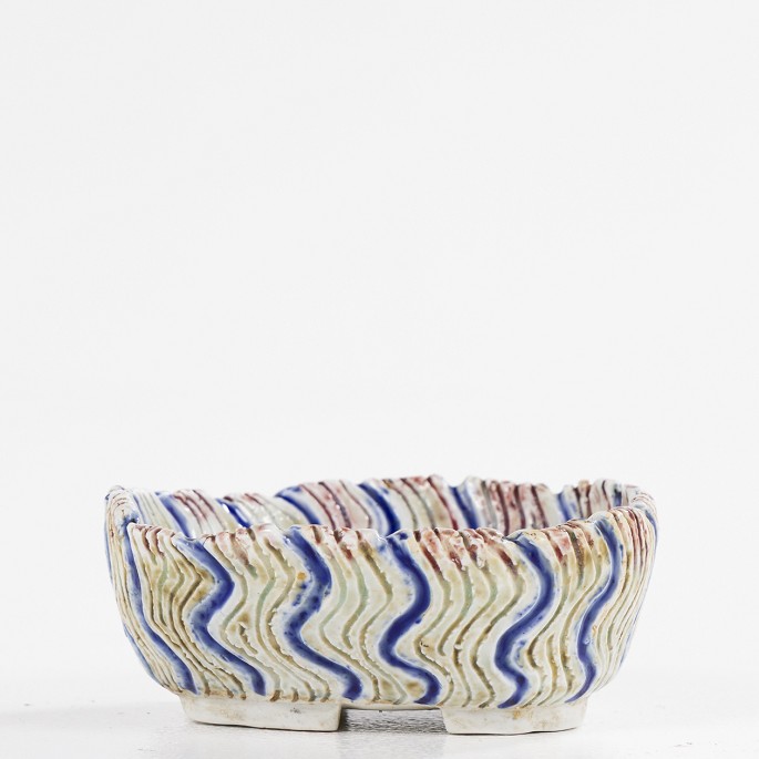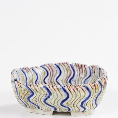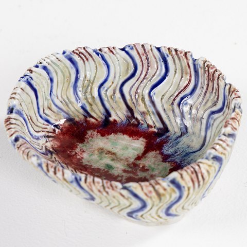 Unika skål i stentøj med flerfarvet glasur. Signeret.