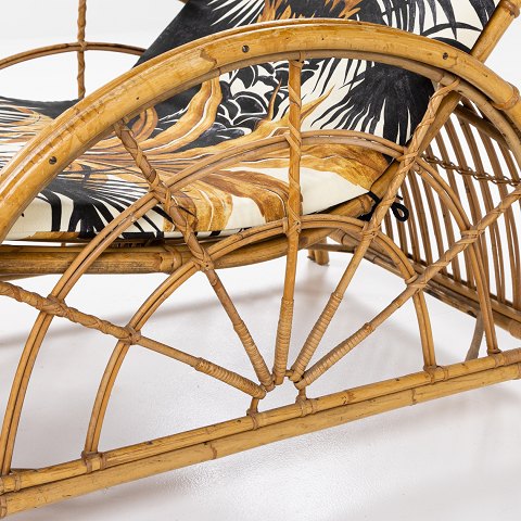 Lænestol i flettet bambus med hynde i Vainui (farve: Coco) fra Pierre Frey.