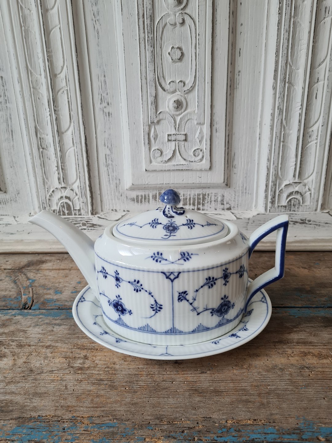 Royal Copenhagen Musselmalet riflet sættefad. Fadet passer til tekande no. 255 som vist på detalje billedet.