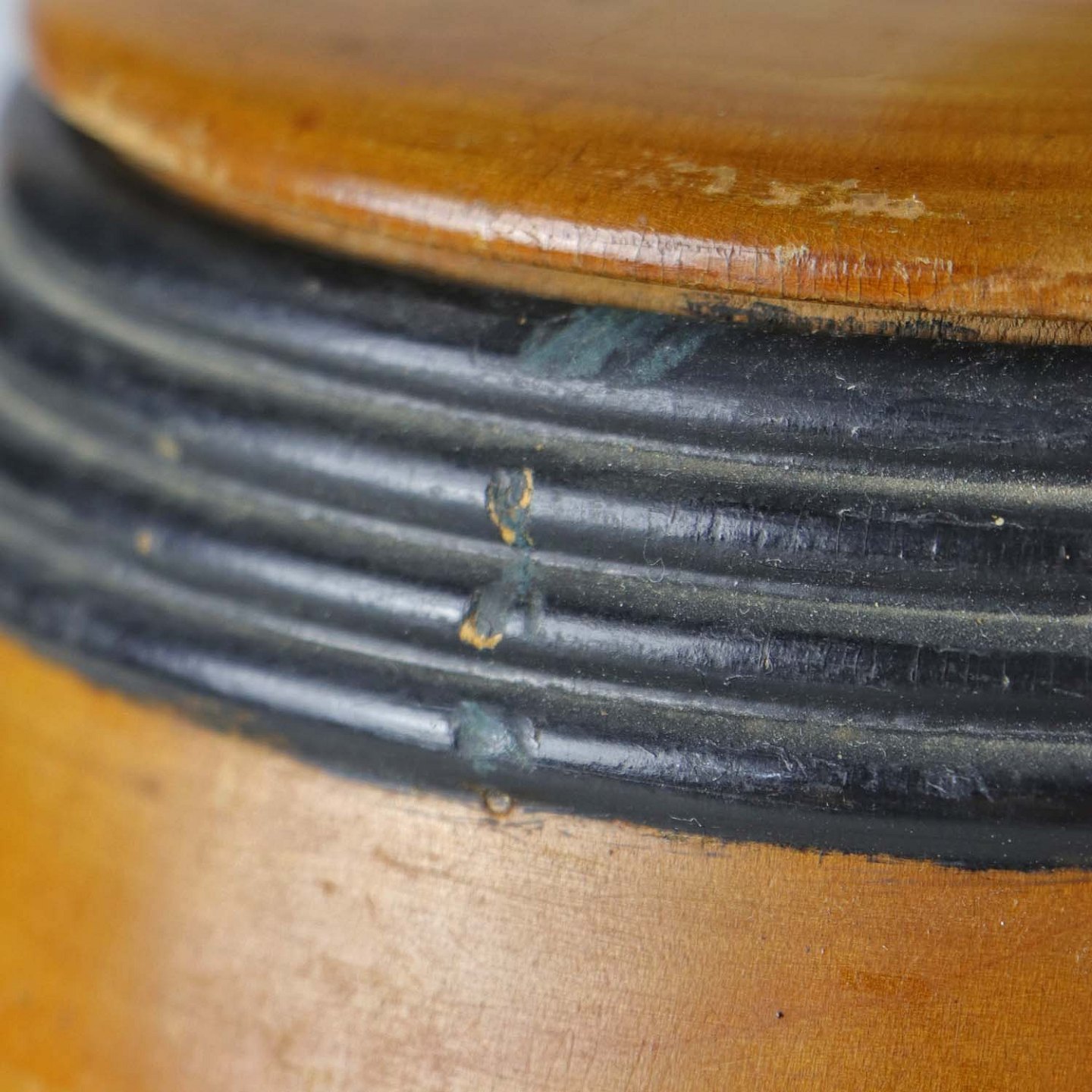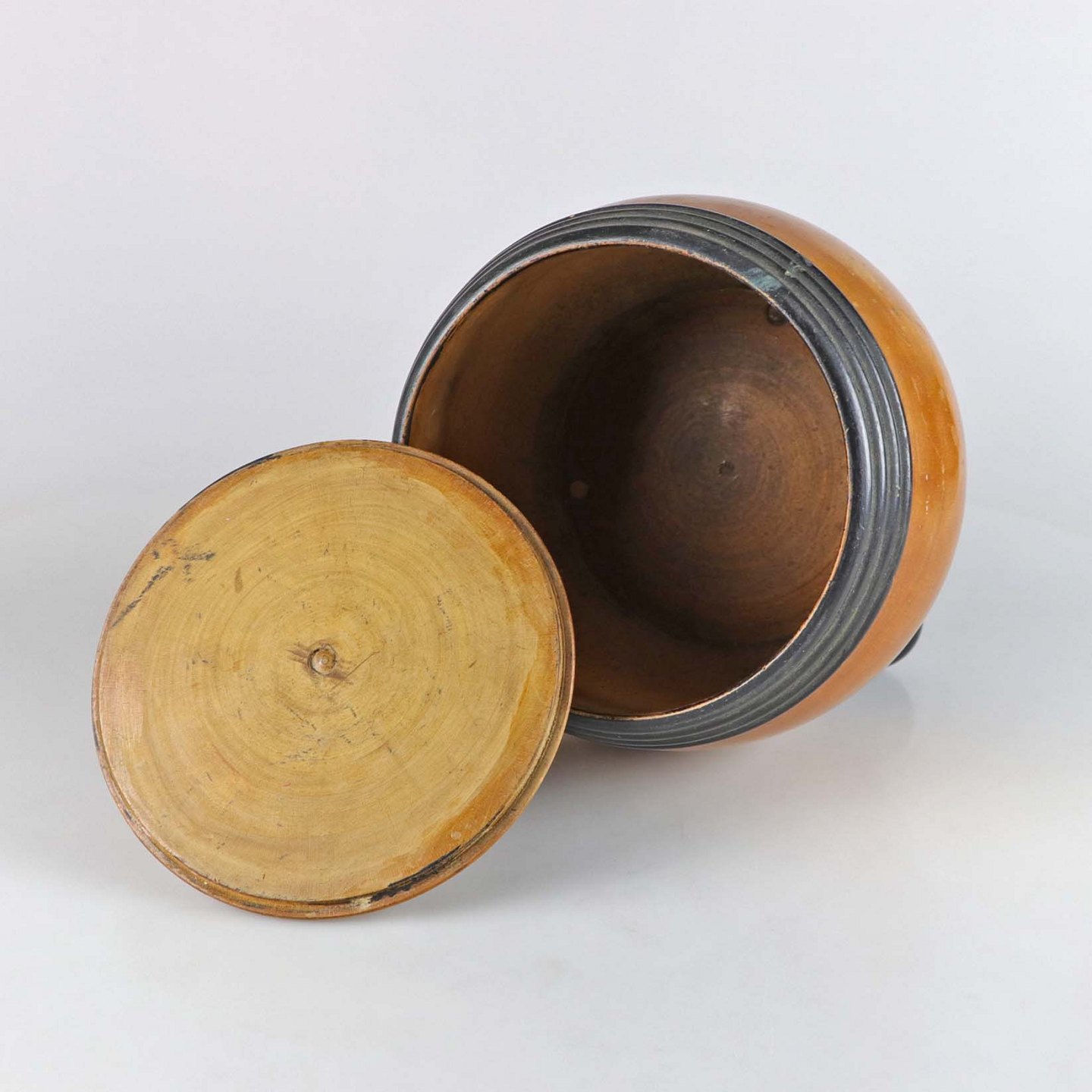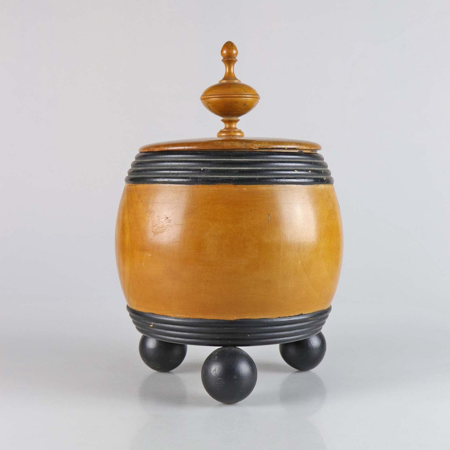 Tobakstønde fra år 1890 i Lakeret bøgetræ. Kugler som fødder og spir på låget