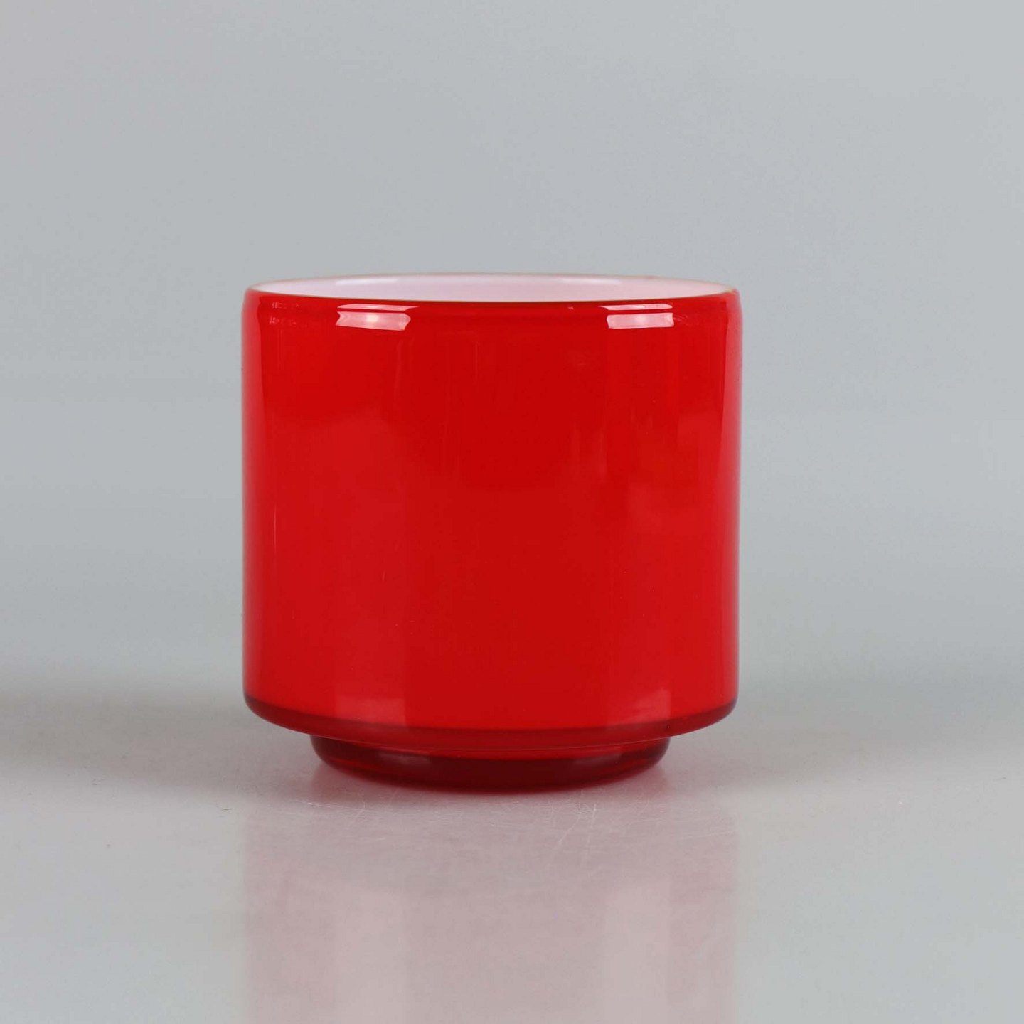 Krukke i rødt mundblæst glas fra serien Palet