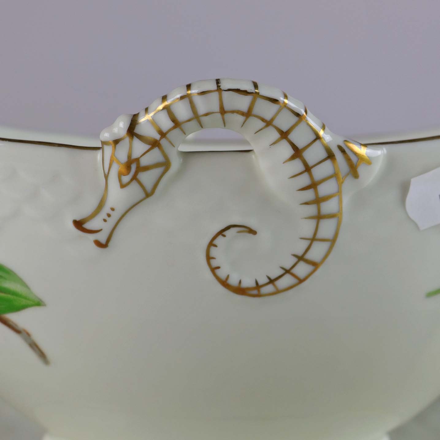 Heimdal er cremefarvet, dekoreret med jasminblomster, grene og en guldkant. Porcelænet er dekoreret som skæl
