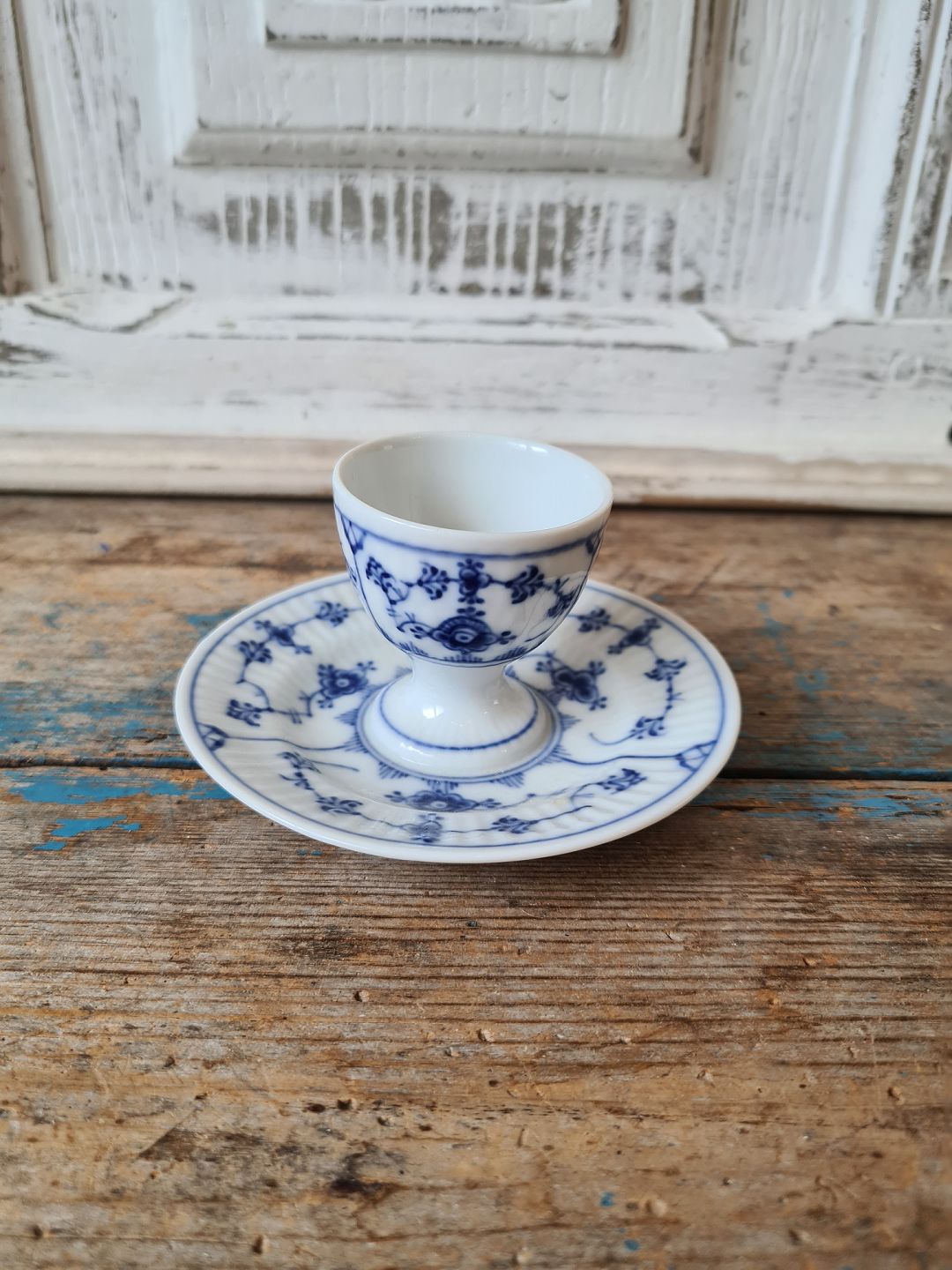 Royal Copenhagen Musselmalet riflet æggebæger på fod