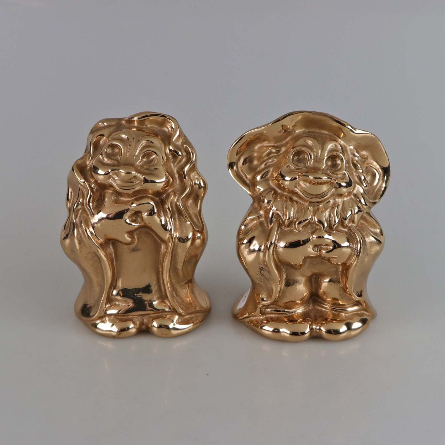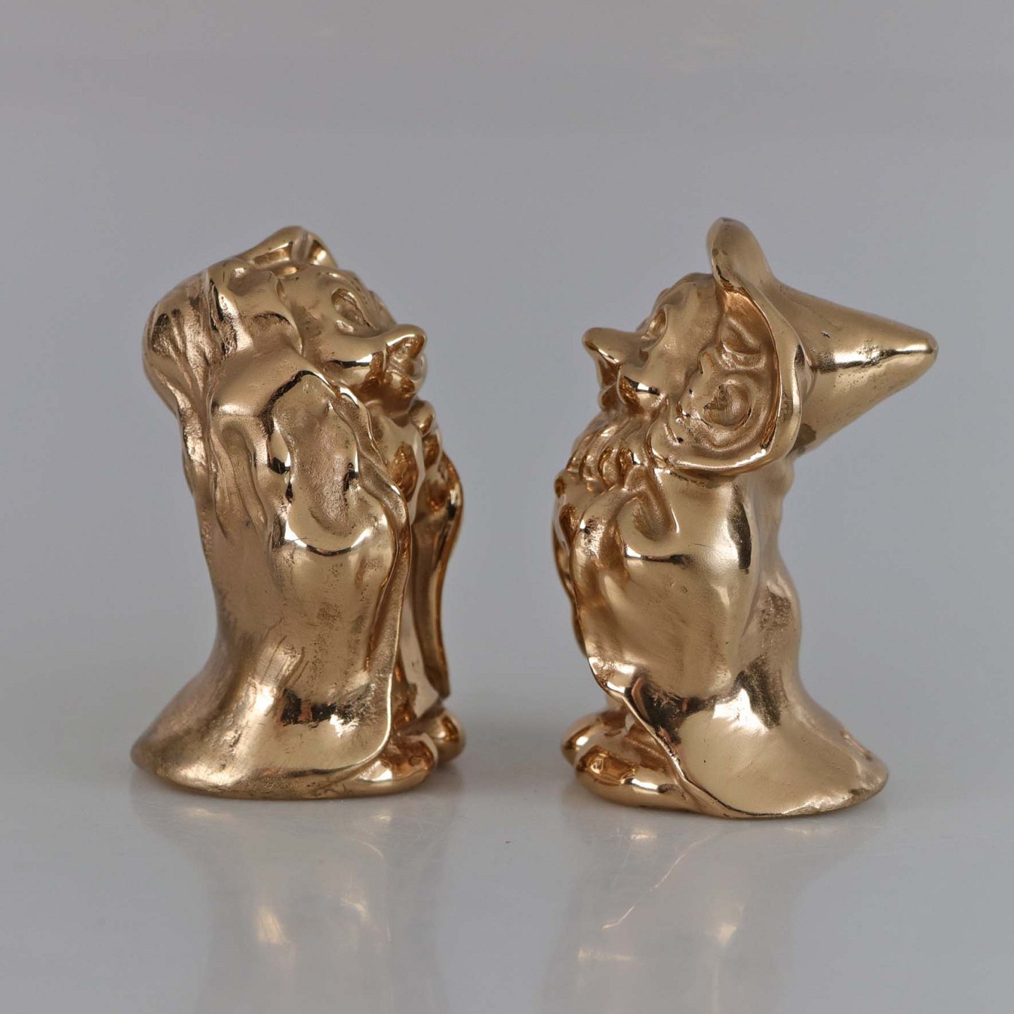 Thomas Dam troldepar i messing. De er lavet i 50 eksemplarer i forbindelse med Lykketroldens 60 års Jubilæum.