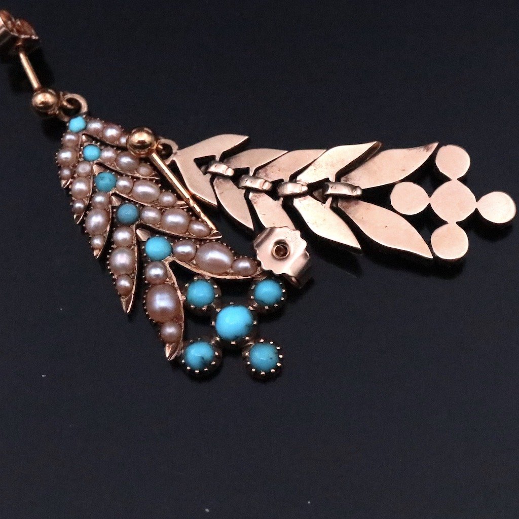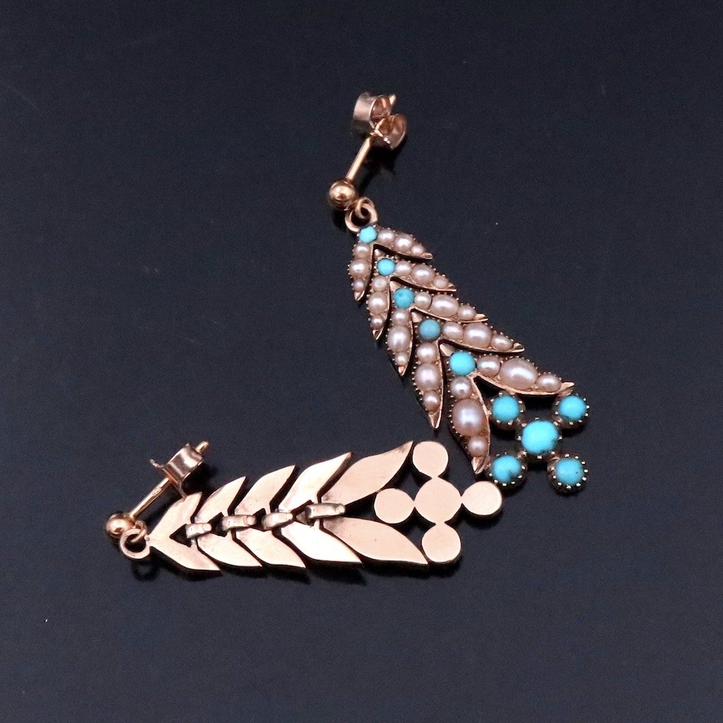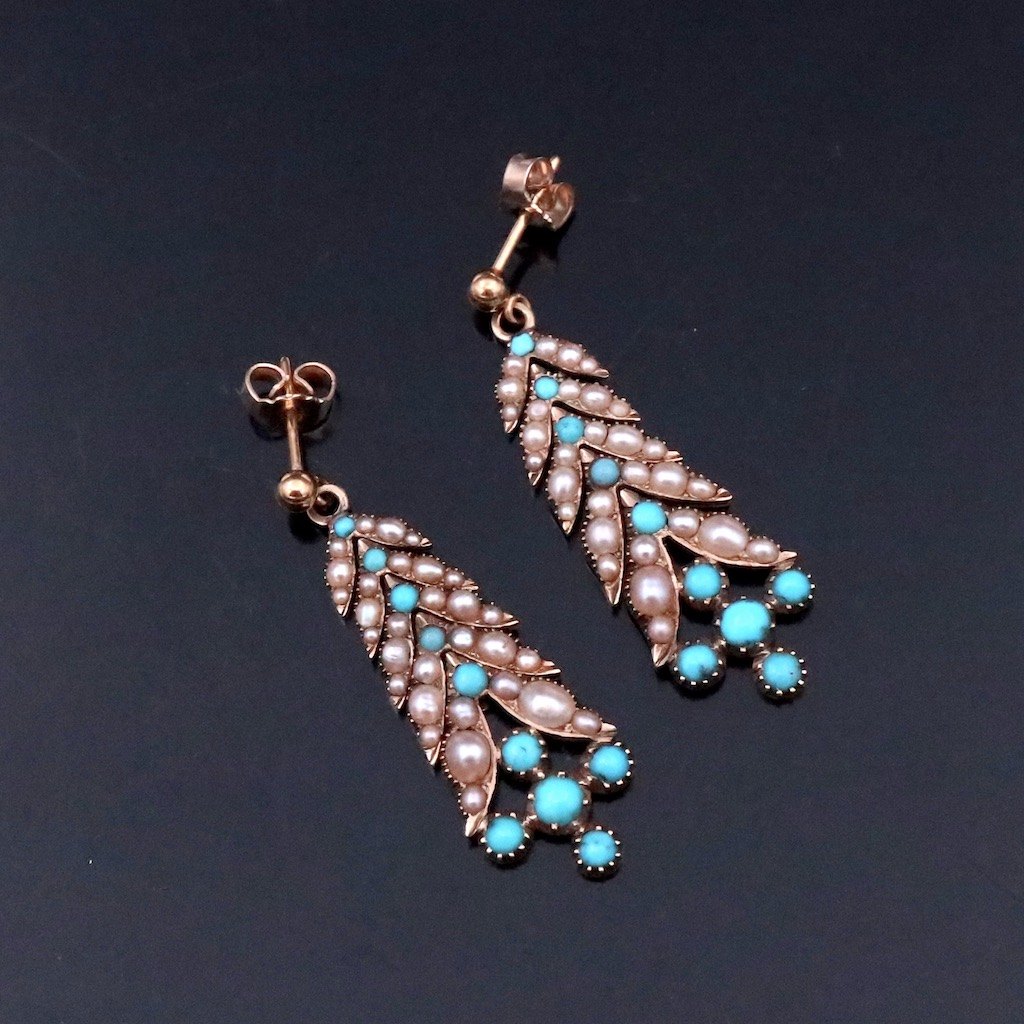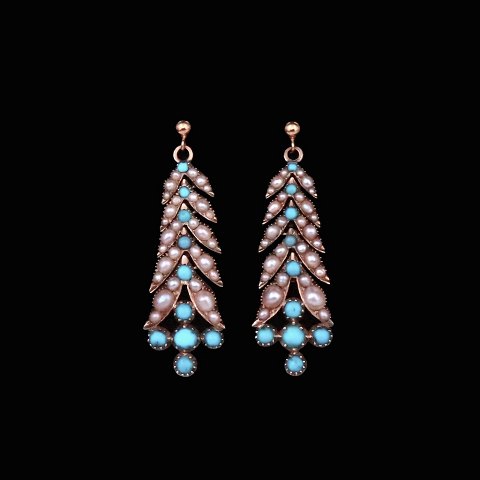 Øreringe i 14k guld med orientalske perler og turkiser.