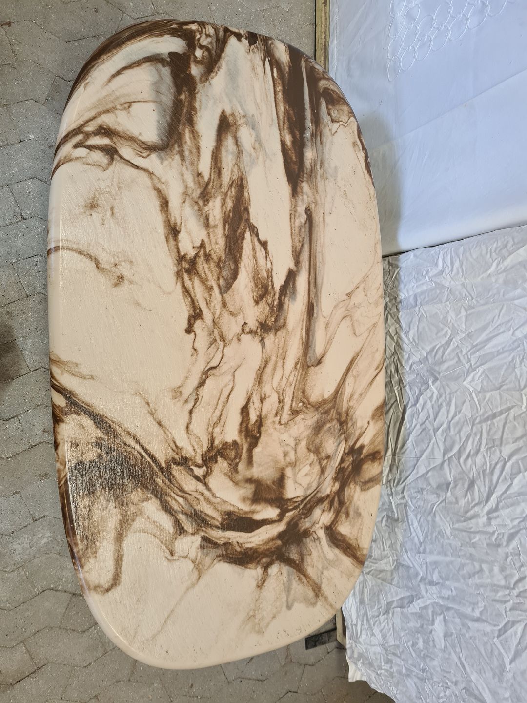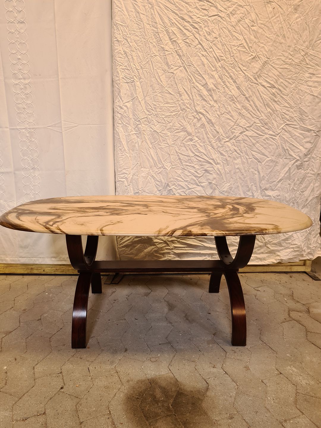 Sofabord i bejdset bøgetræ med bordplade i støbt stenmasse, fra 1990erne.