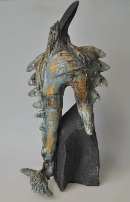Baarstrøm, Gerd (1946 -) Denmark: Flyvefisken. Raku. Signed 2009. Height: 34 cm.