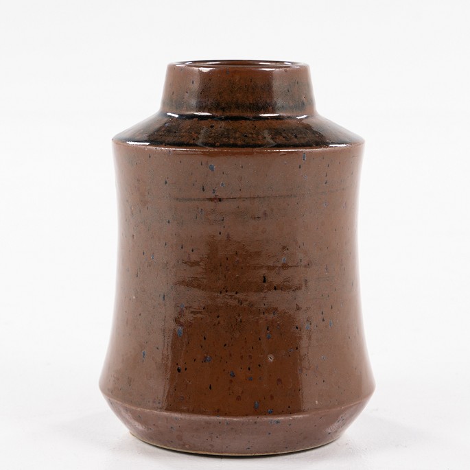 Vase i brunglaseret stentøj.