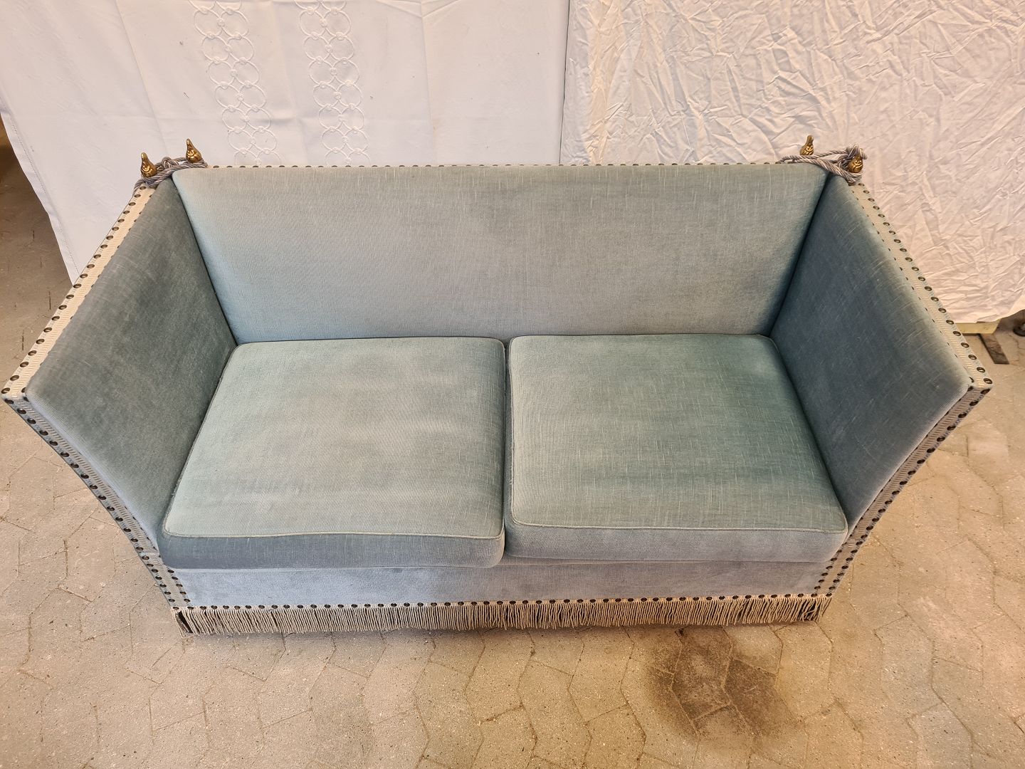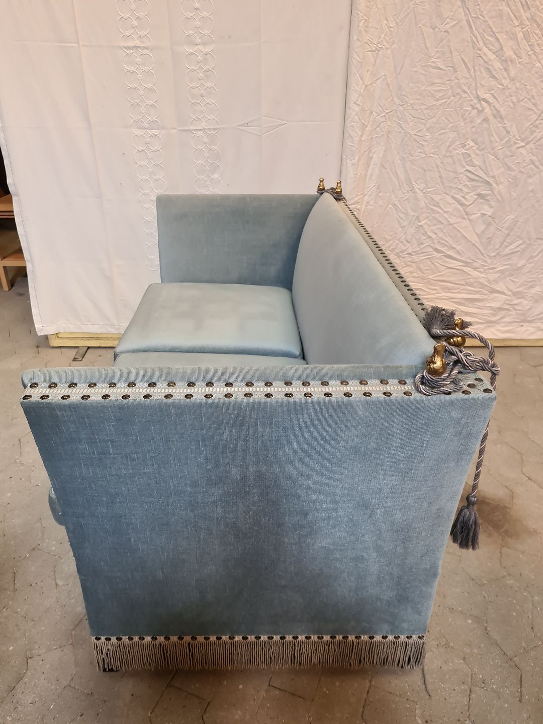Spansk sofa i velour med vendbare hynder, fra 1980erne.