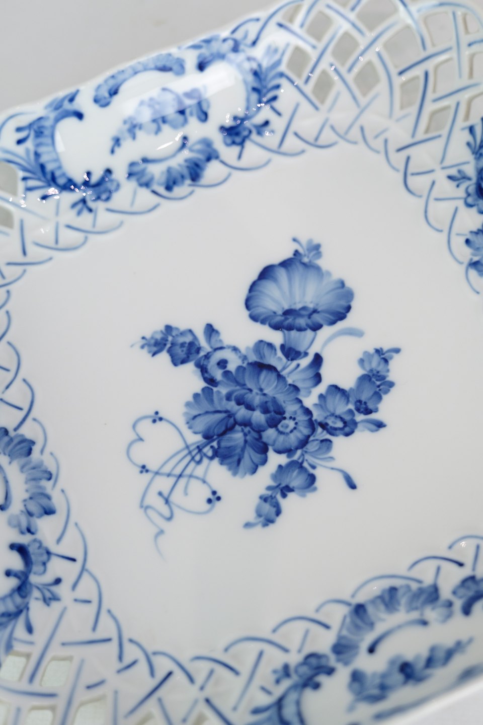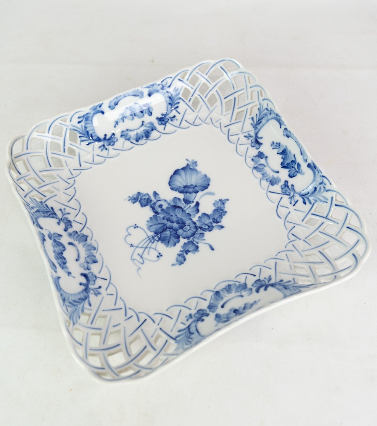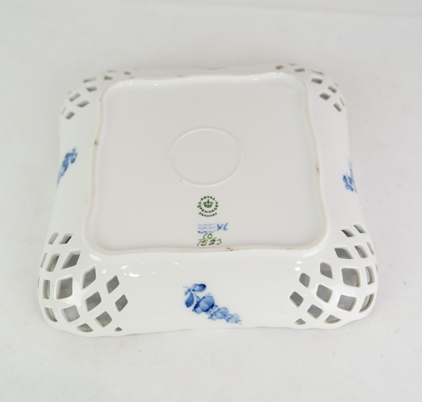 Royal Copenhagen Blå Blomst Svejfet Firkantet Fad med gennembrudt kant Nr 1523