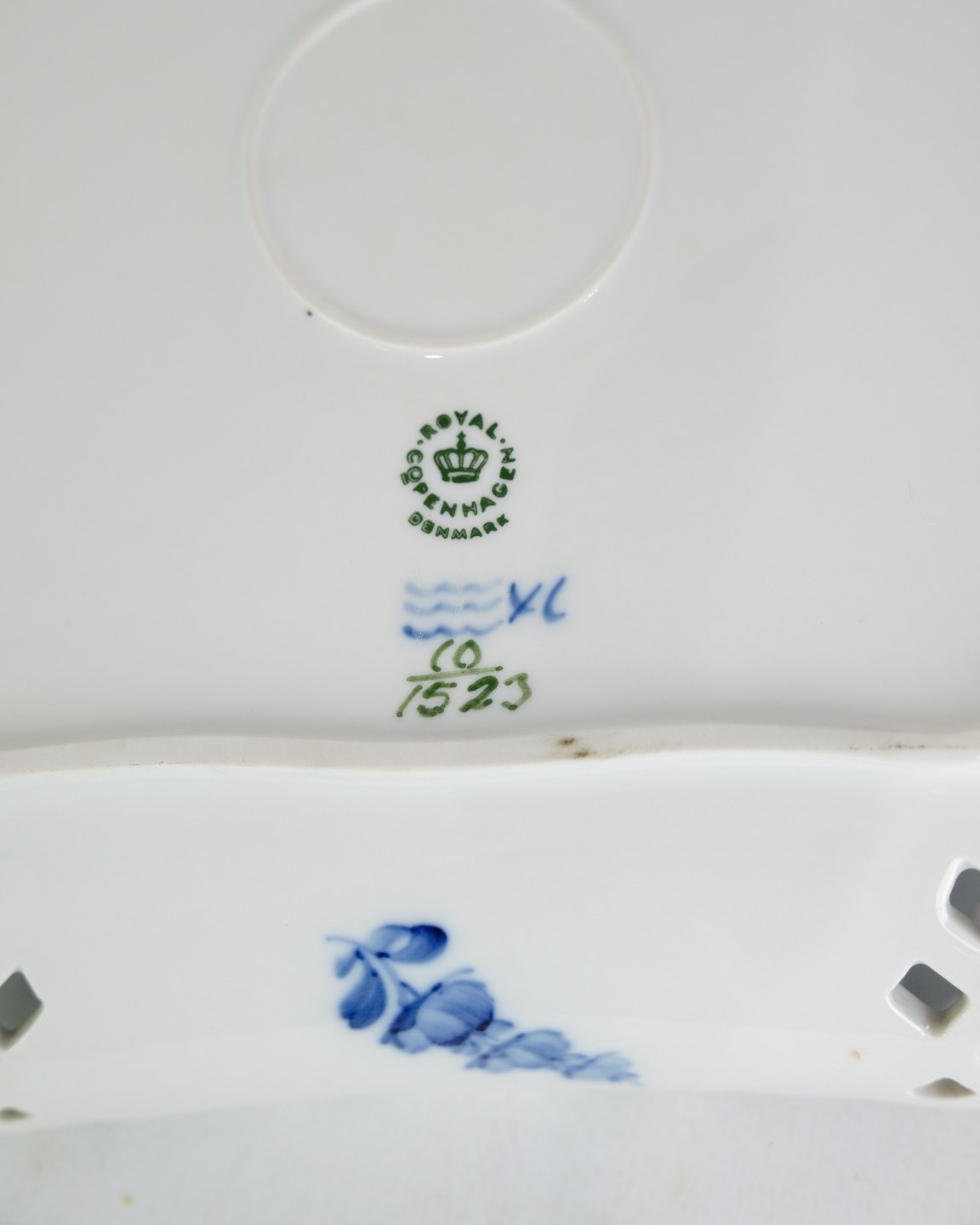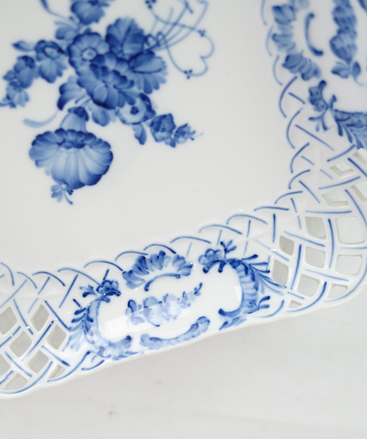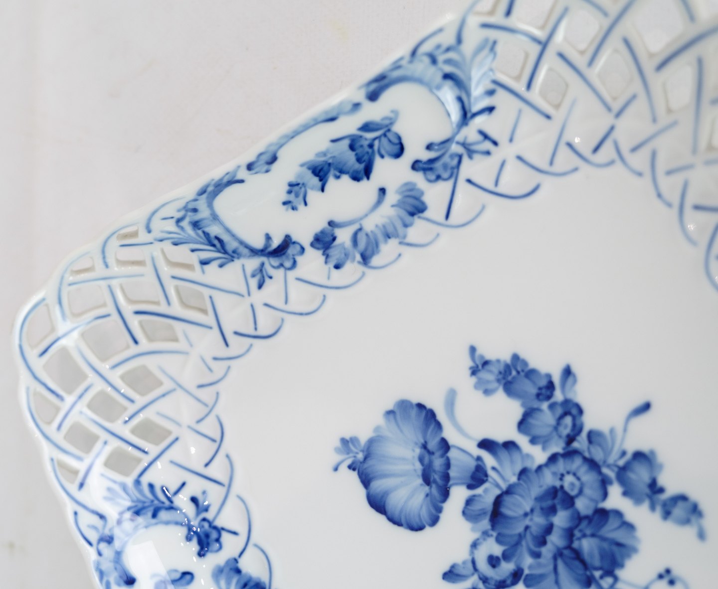 Royal Copenhagen Blå Blomst Svejfet Firkantet Fad med gennembrudt kant Nr 1523