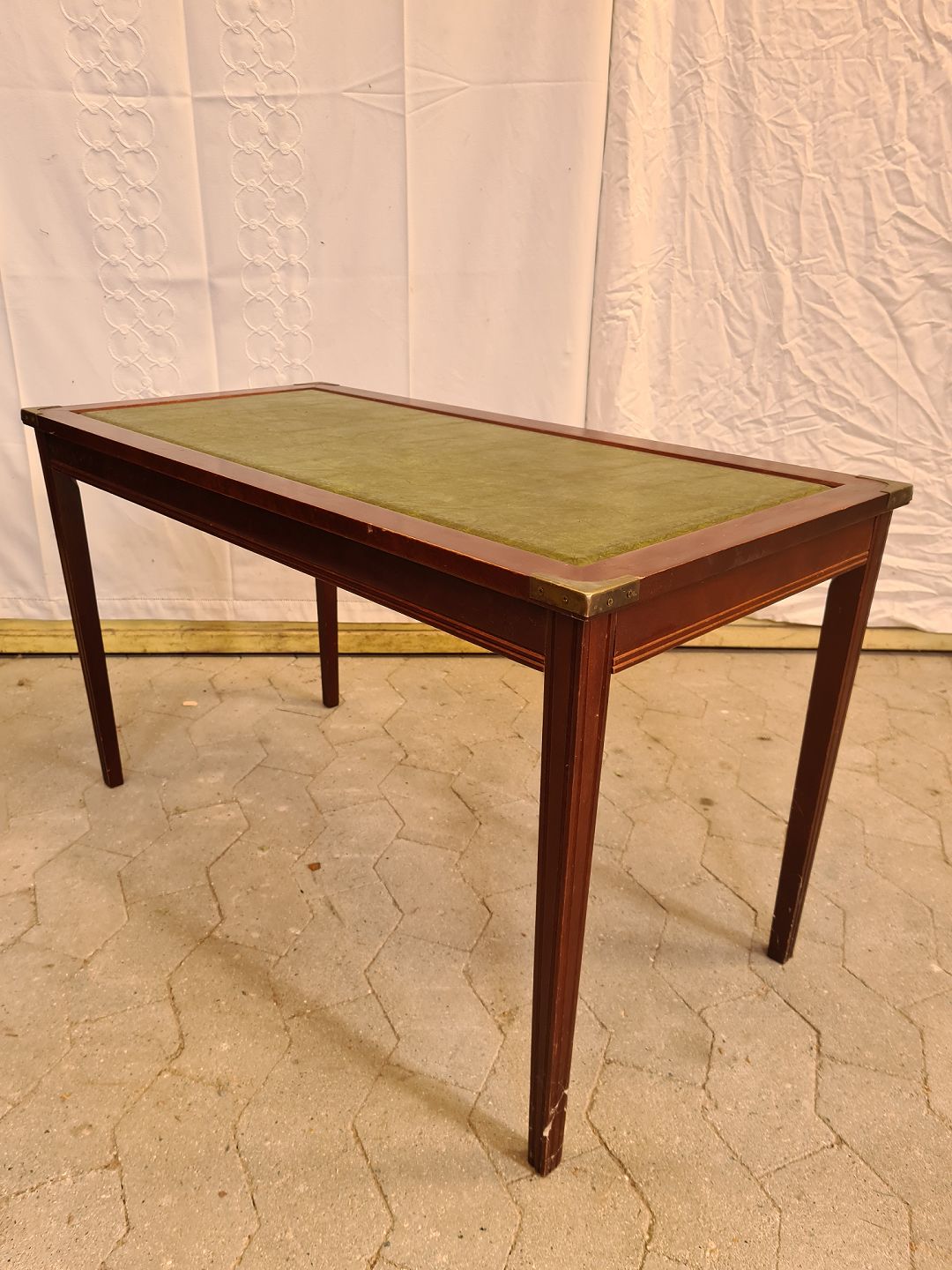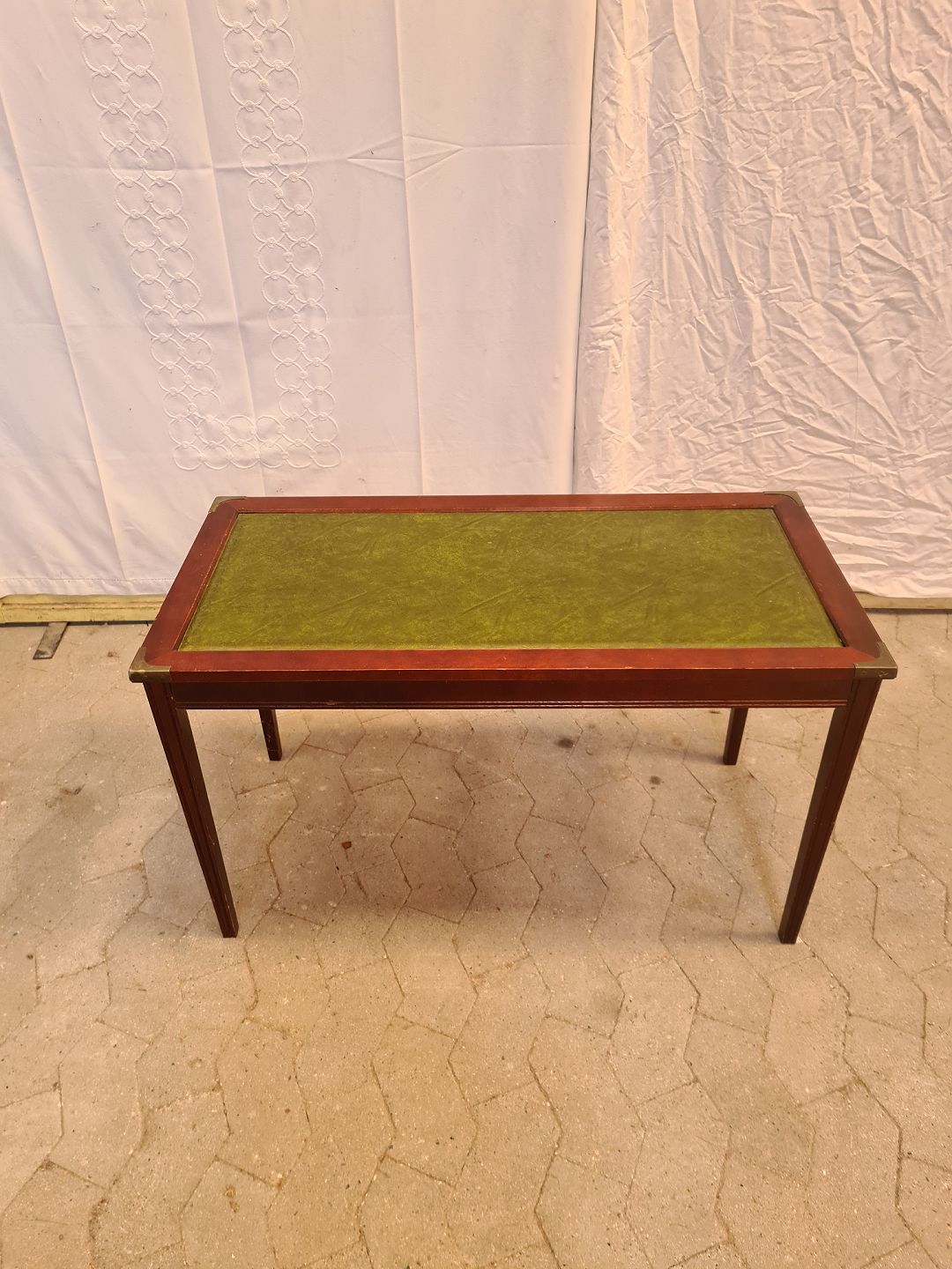 Sofabord i bejdset bøgetræ med kunstlæder indlæg, fra 1980erne.