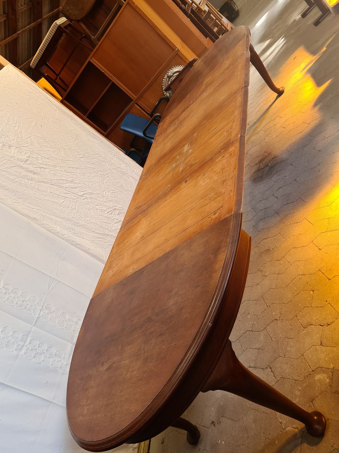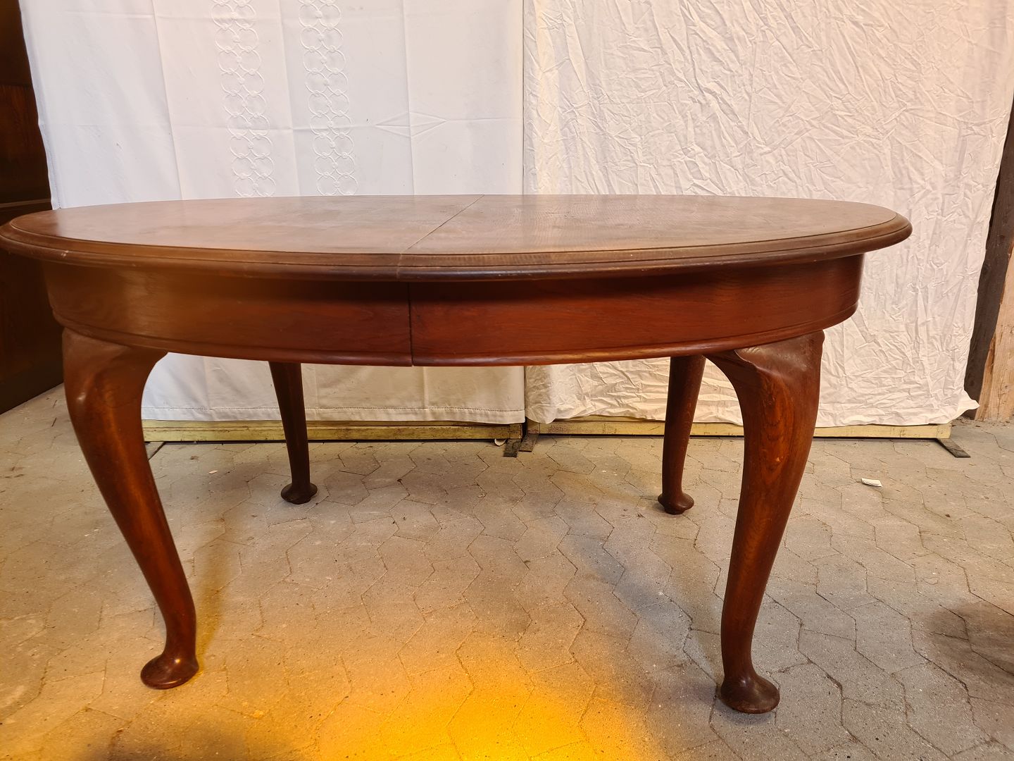 Spisebord i massivt egetræ med 4 tillægsplader, fra 1920erne.