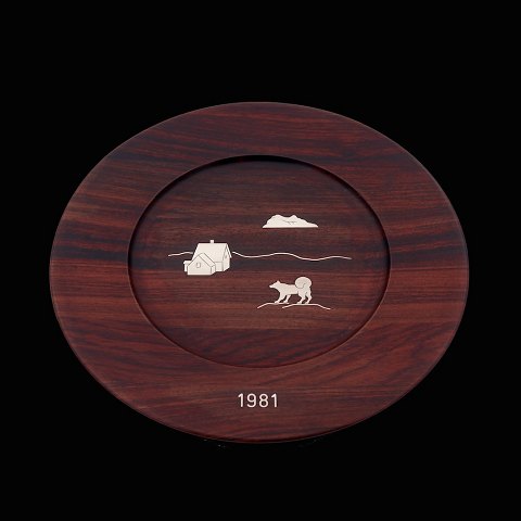 Robert Dalgas Lassen. Dækketallerken i palisander med intarsia i sterling sølv - 1981.