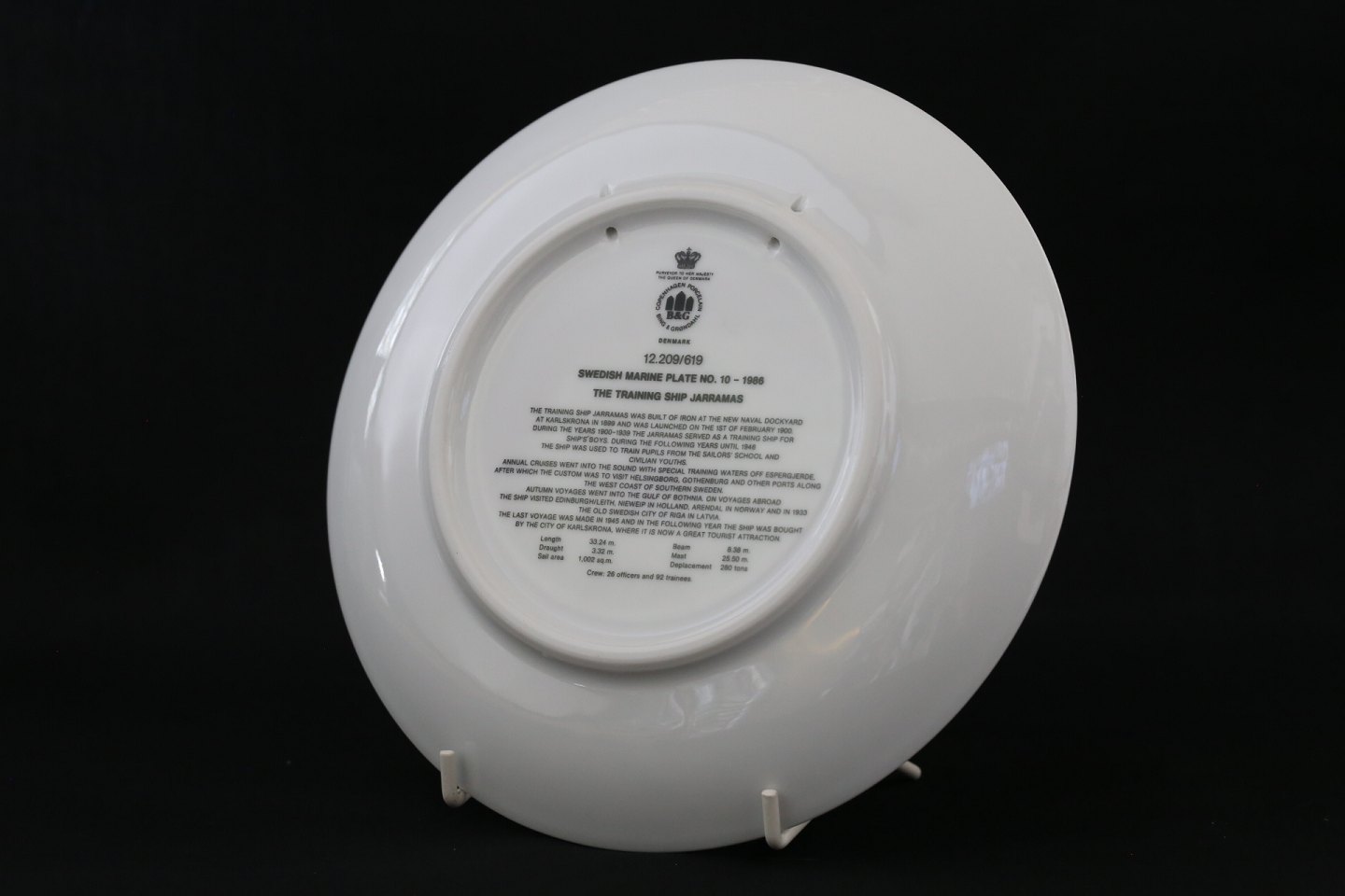 Skibsplatte Bing & Grøndal, No. 10, fra 1986. Platten er bemalet med Skolskeppet, med teksten 1900 Jarramas 1946. Der er tekst om skibet på bagsiden af platten.