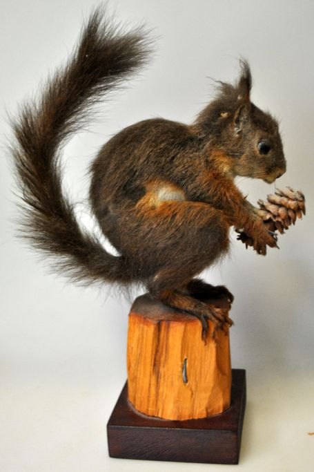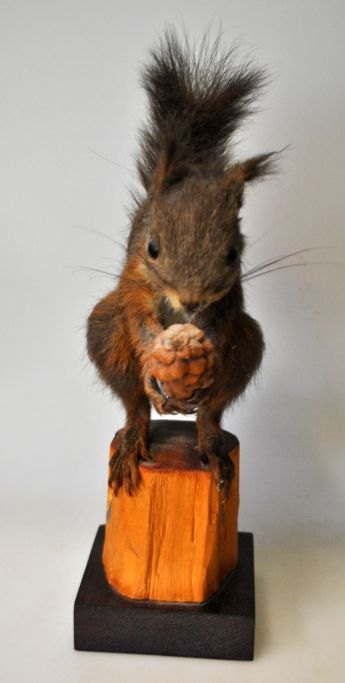 Udstoppet egern, Sciurus vulgaris, 20. årh. Danmark.