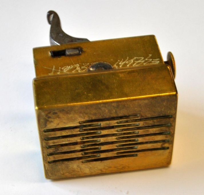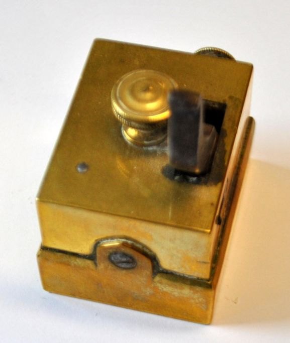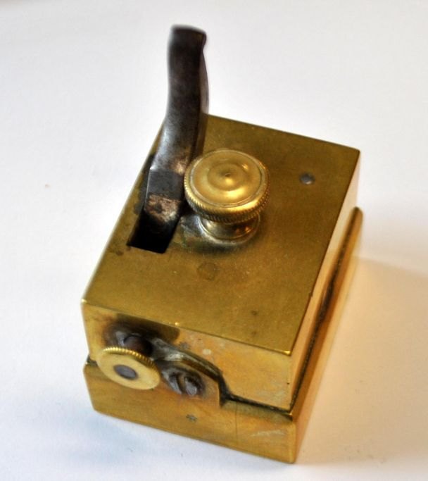 Åre ladnings apparat, 19. årh. Udført i messing. Med 16 knive. H.: 3,3 cm. L.: 4,5 cm. B.: 3,6 cm.
