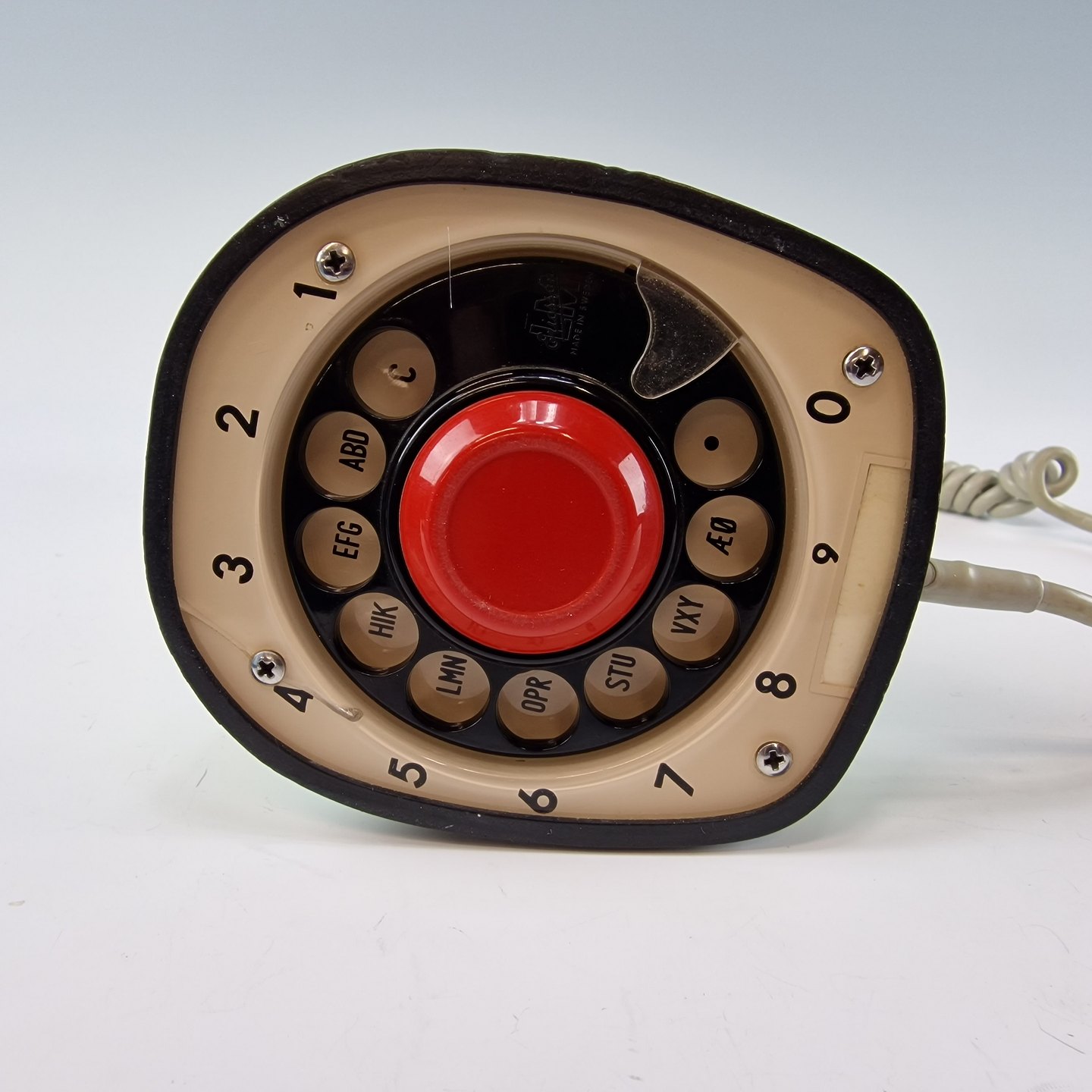 Mintgrøn fastnettelefon med drejeskive i bunden