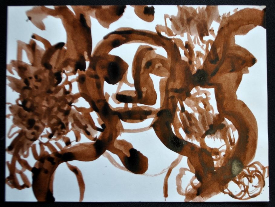 Gislason, Jon (1955 - ) Danmark: En mand. Tusch på papir. Usigneret. 24 x 32 cm.  Uindrammet.