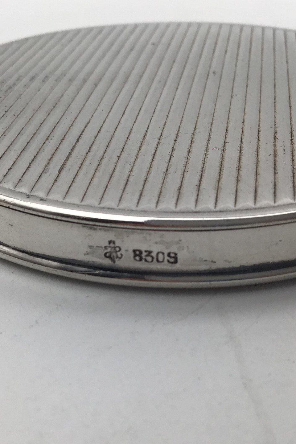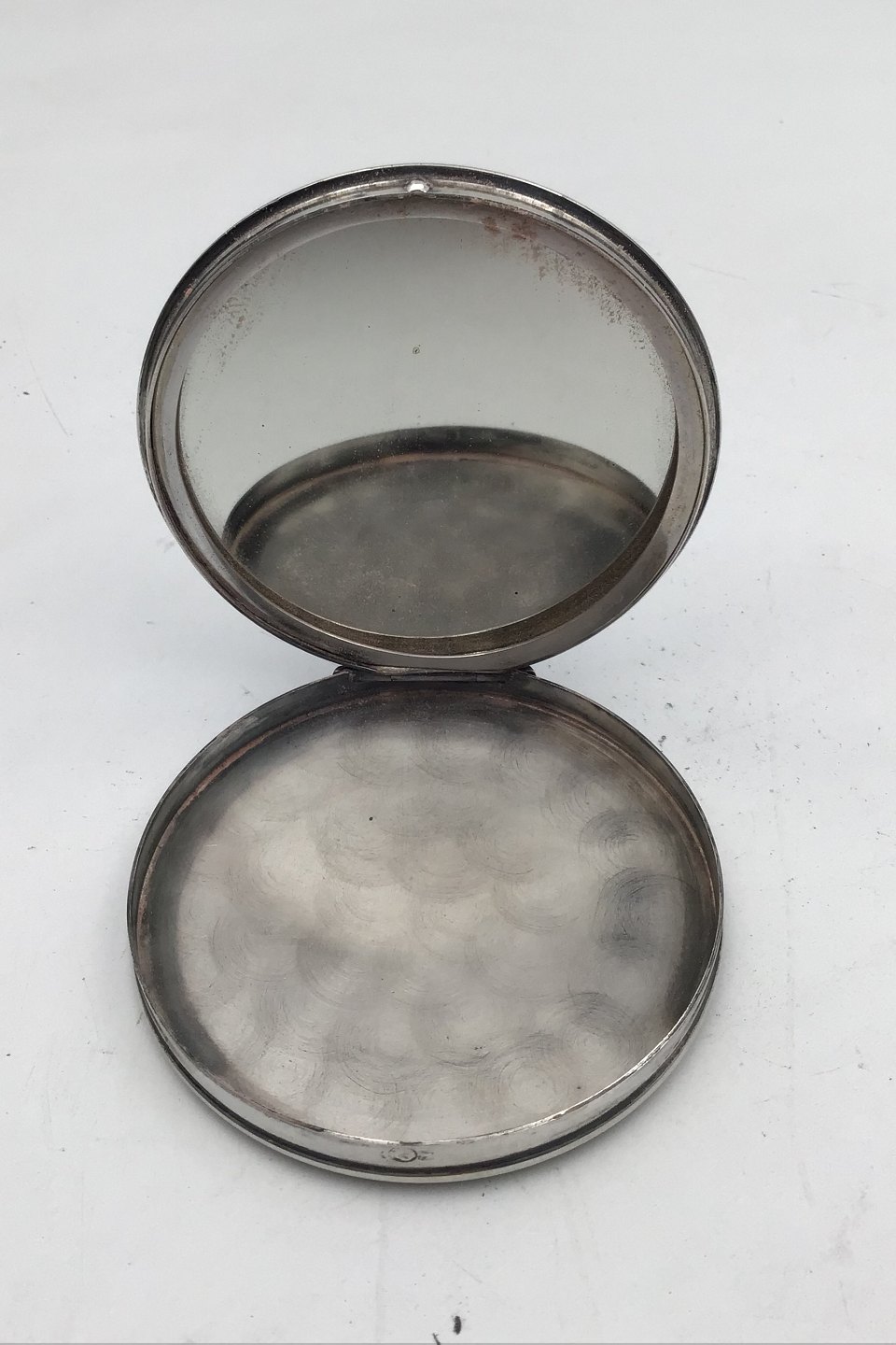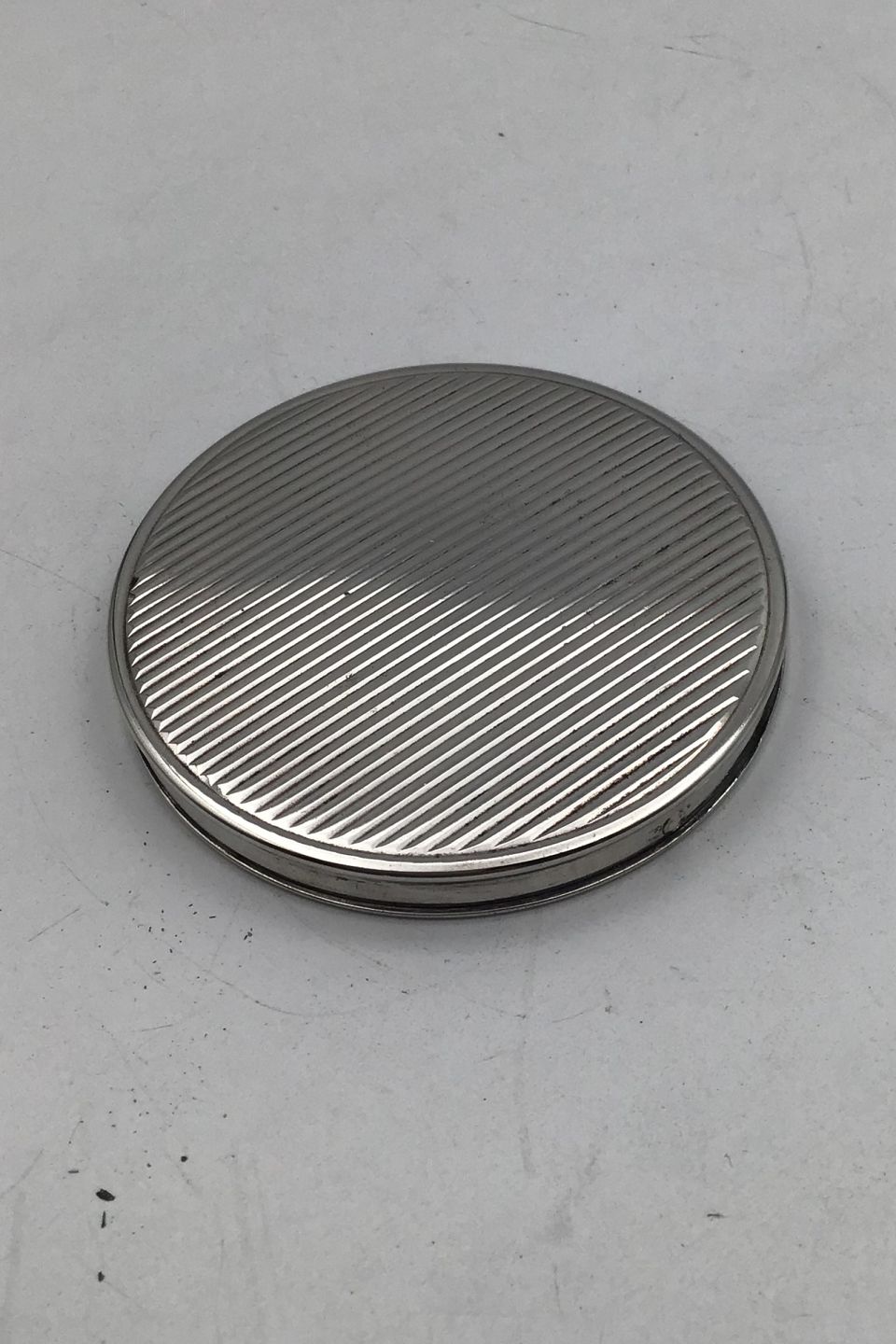 Dansk Sølv Pudderdåse Måler Diam 7.5 cm (2.95 inch) Vægt incl spejl 77.6 gr (2.74 oz)