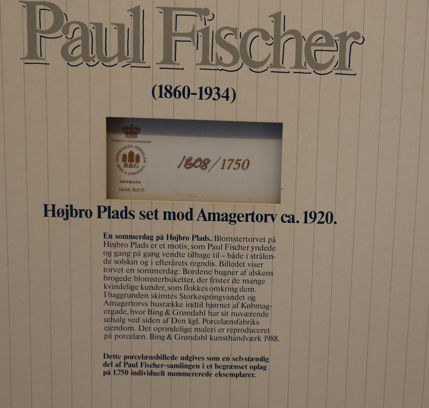 Bing & Grøndahl porcelænsbillede i guldramme 36.5 x 42 cm Paul Fisher (1860-1934) Højbroplads set mod Amagertorv no 1608 af 1750