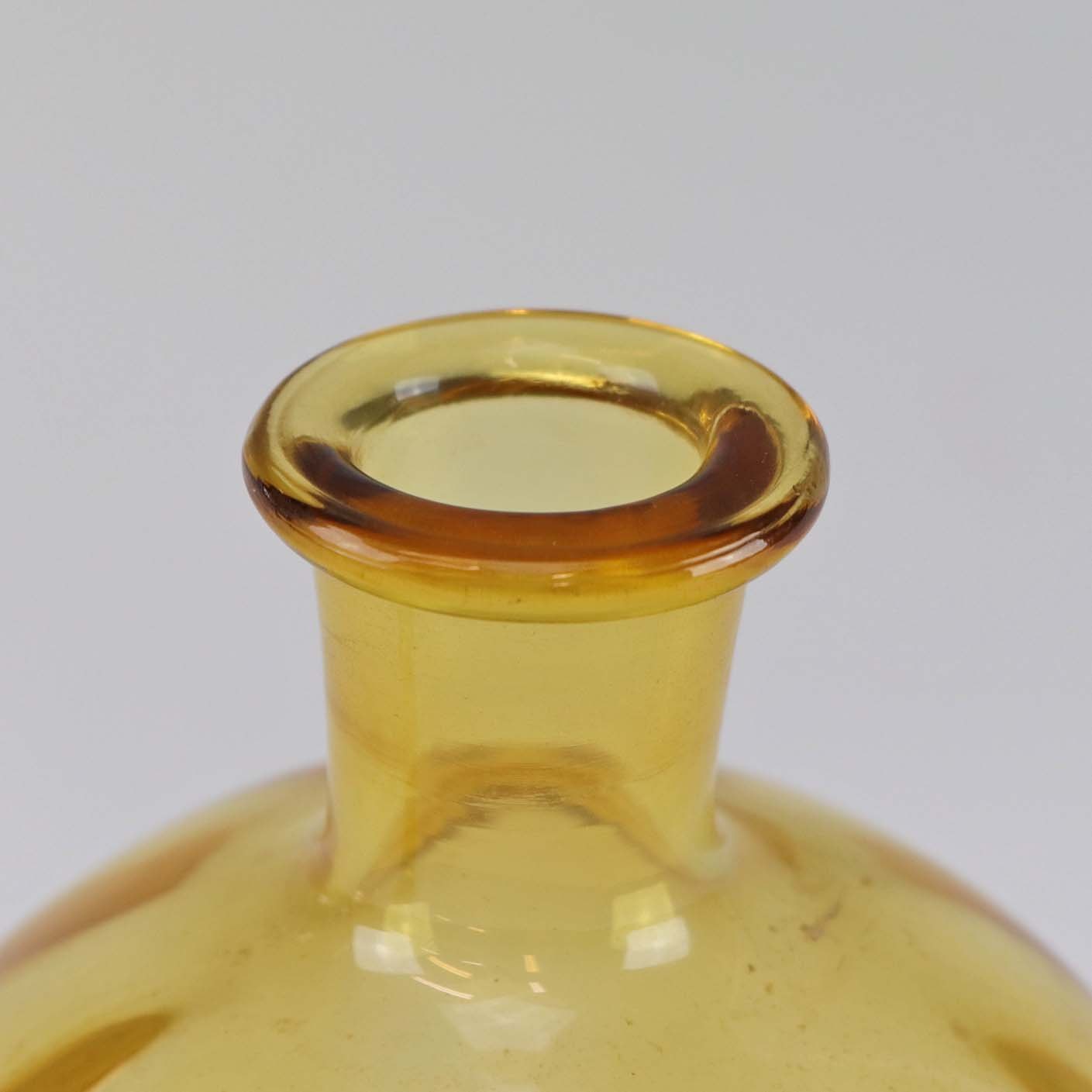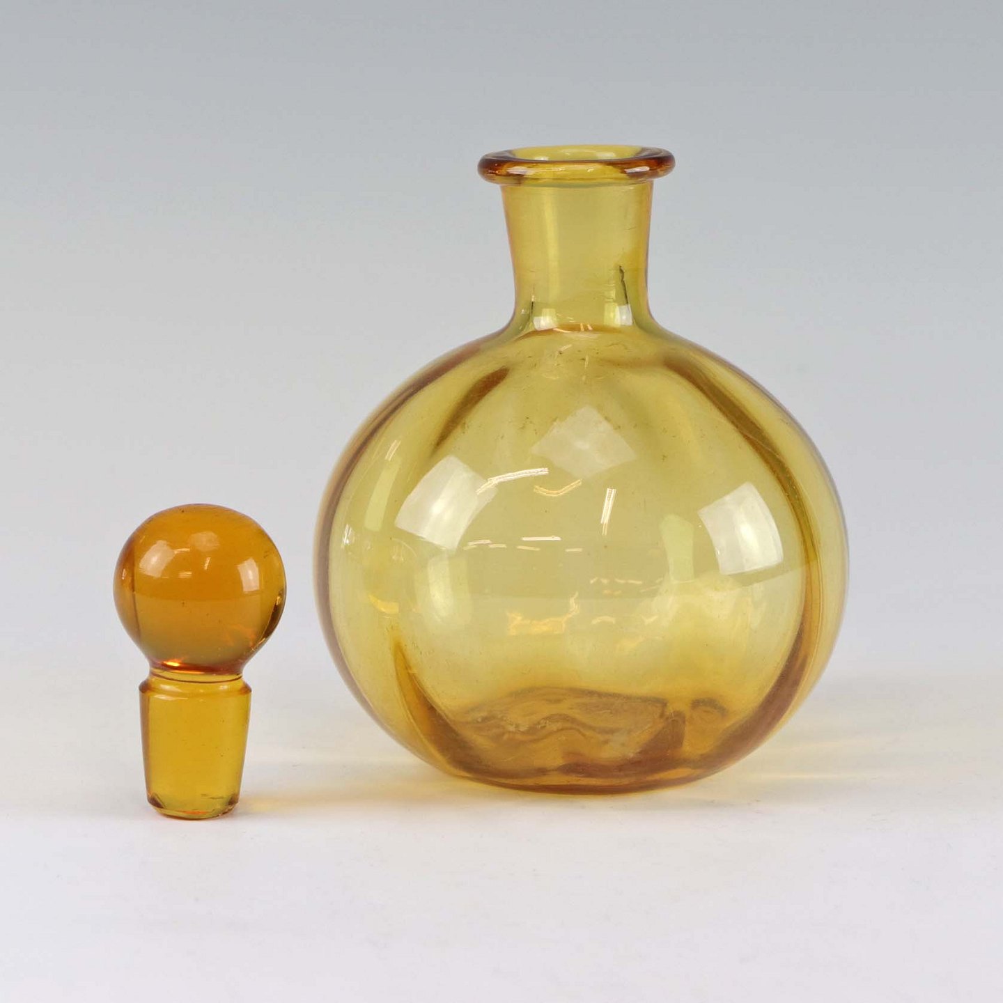 Rund likør karaffel af ravfarvet optisk glas med glas prop