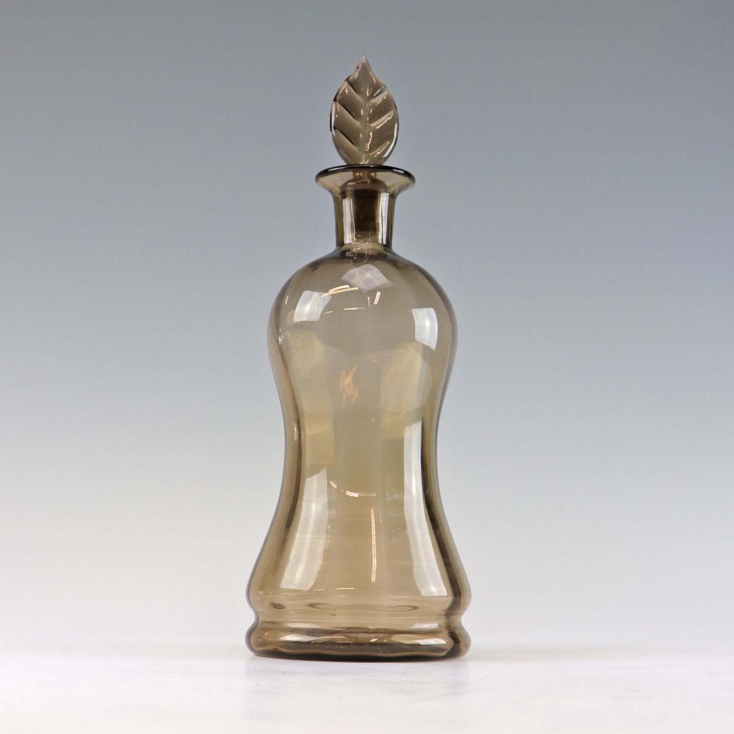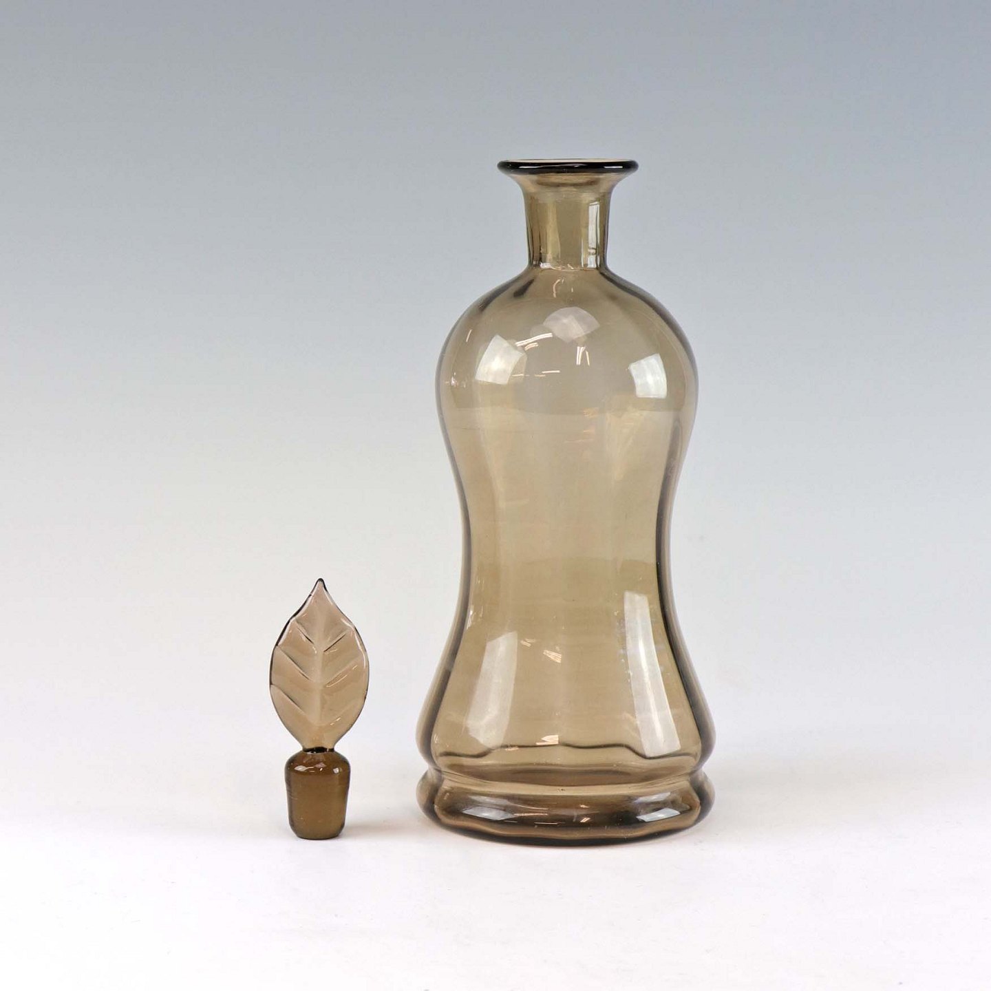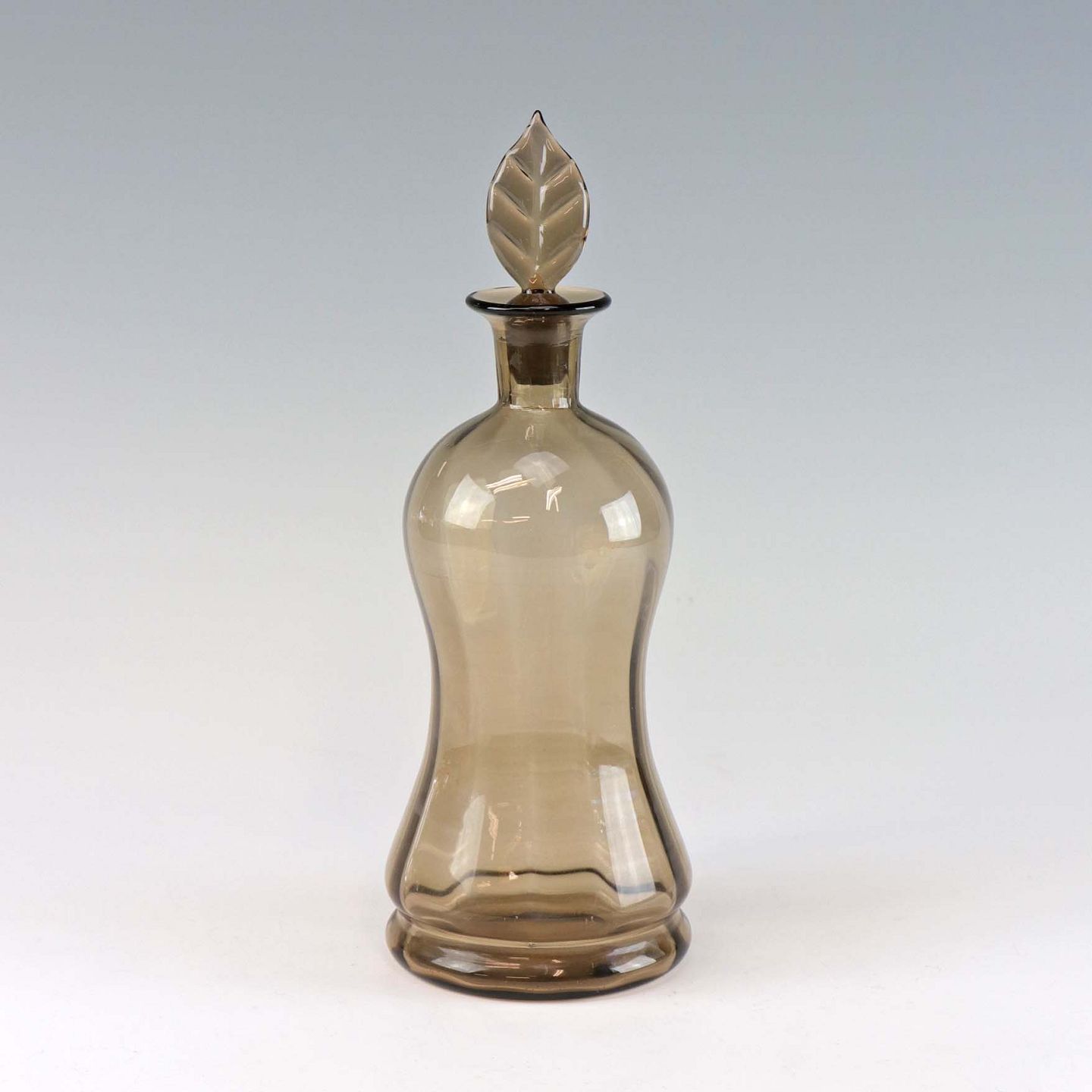 Røgfarvet glaskaraffel med bladformet prop