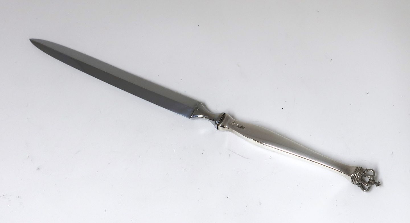 DGS Dansk krone. Brevkniv. Sølv med stål (925). Længde 22 cm.
