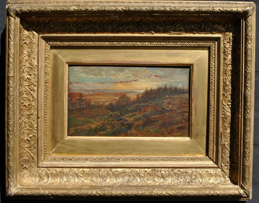 Engelsk kunstner (19. årh.): Landskab. Utydelig signeret. Olie på træ. 20 x 29 cm.