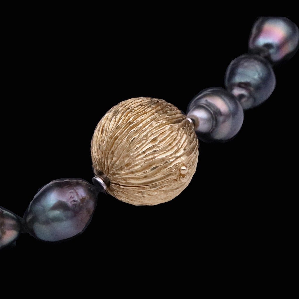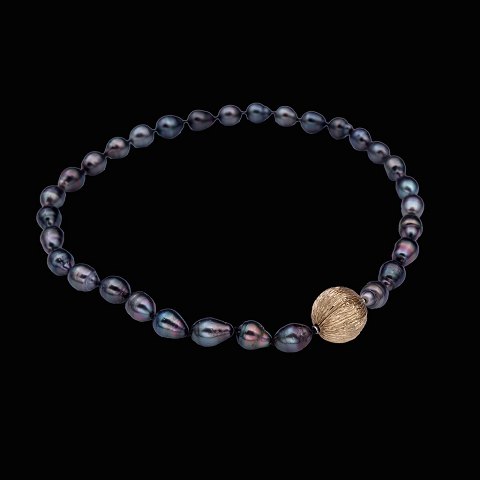 Ole Lynggaard. Tahiti-perlehalskæde med kuglelås i 14k guld.