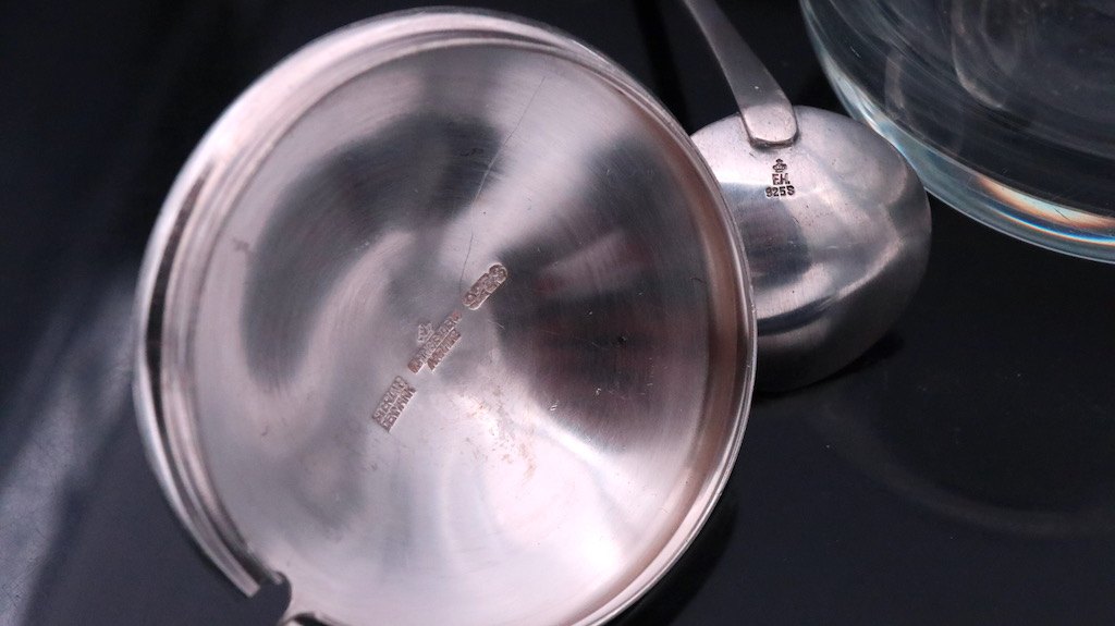 Låg samt ske i sterling sølv tegnet af Svend Weihrauch (1899-1962) og udført hos F. Hingelberg in Aarhus, Denmark.