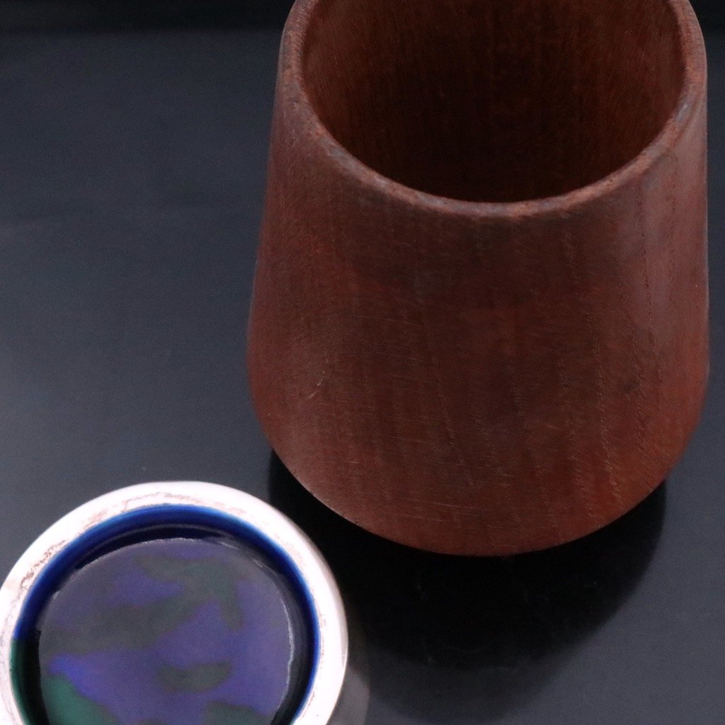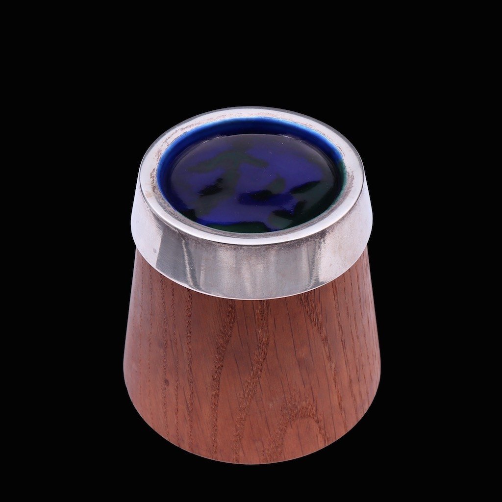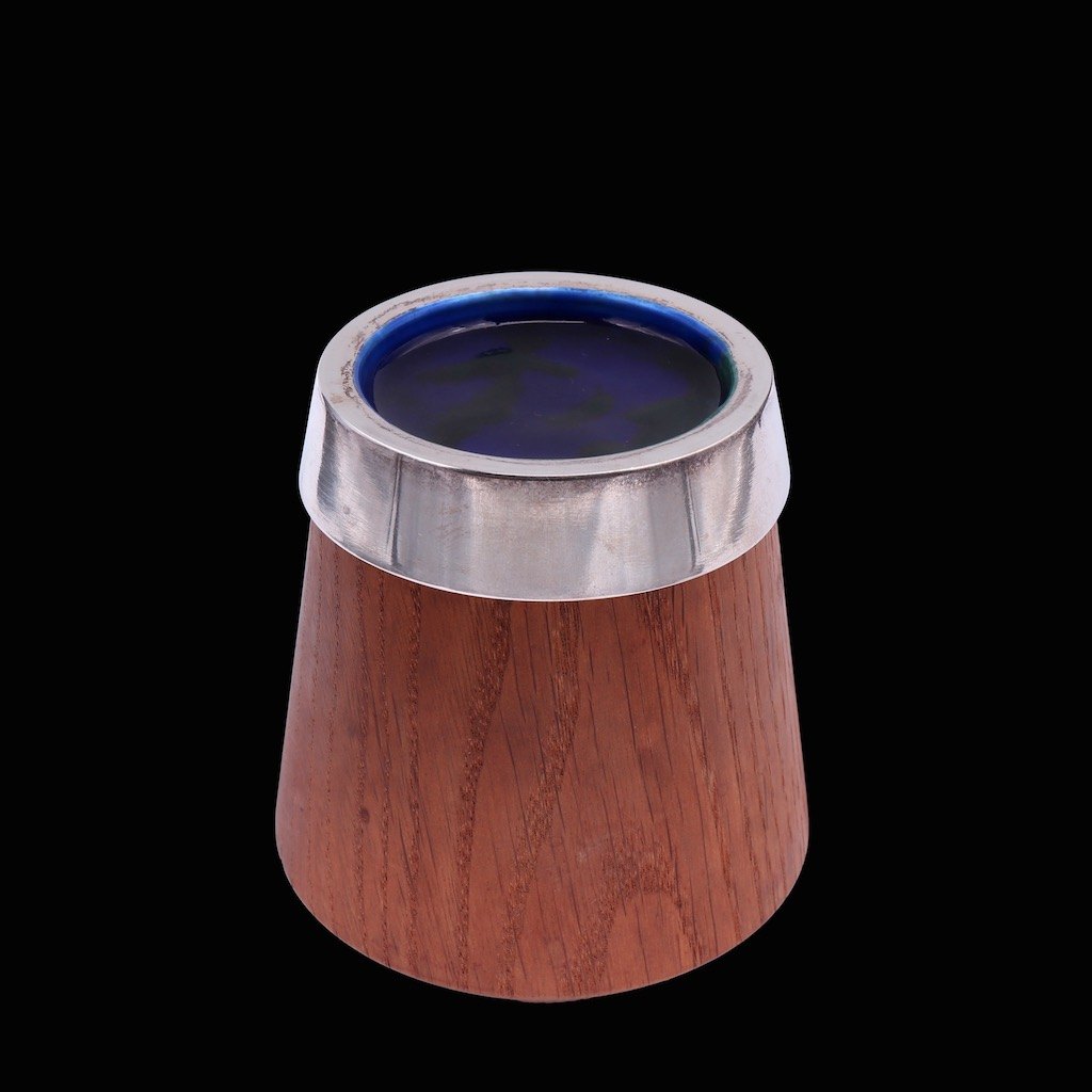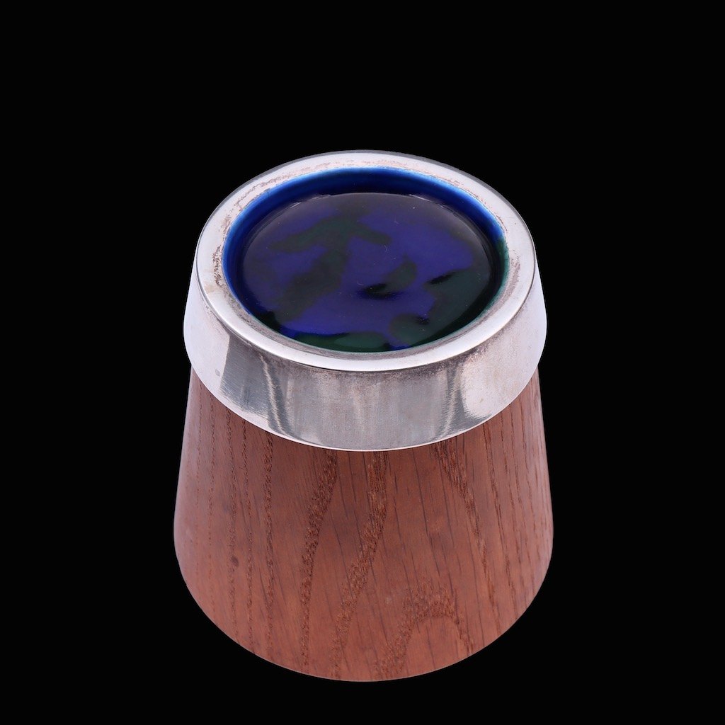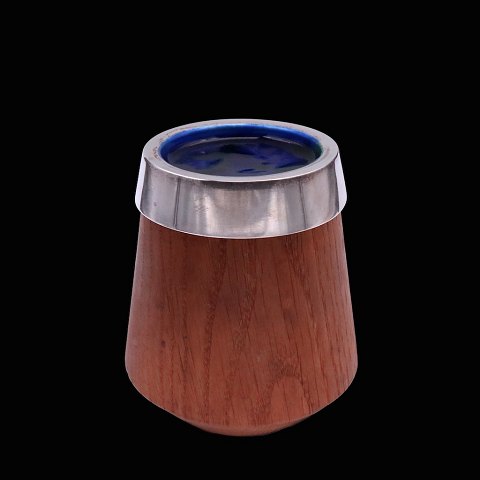 Hans Peter Springborg. Krukke i teak med låg i sterlingsølv med emalje.