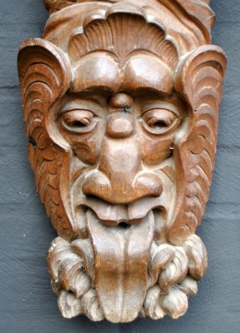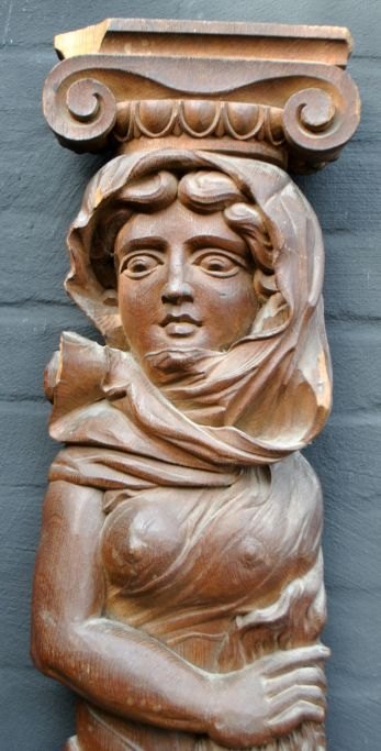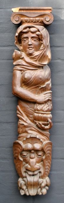 Stor dansk ege træskæring, 19. årh. Skæring af Vestalininde og maskeron. L.: 98 xm. B.: 22 cm. D.: 8 cm.