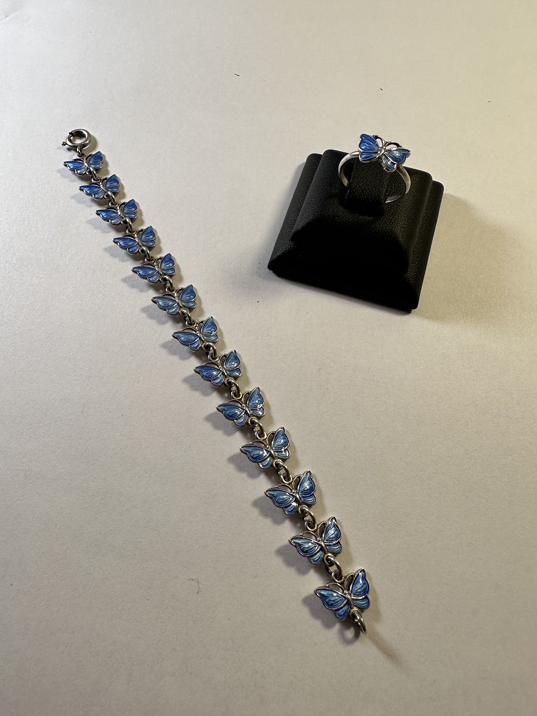 Sølv sommerfugl armbånd sammen med ringe i sølv 925